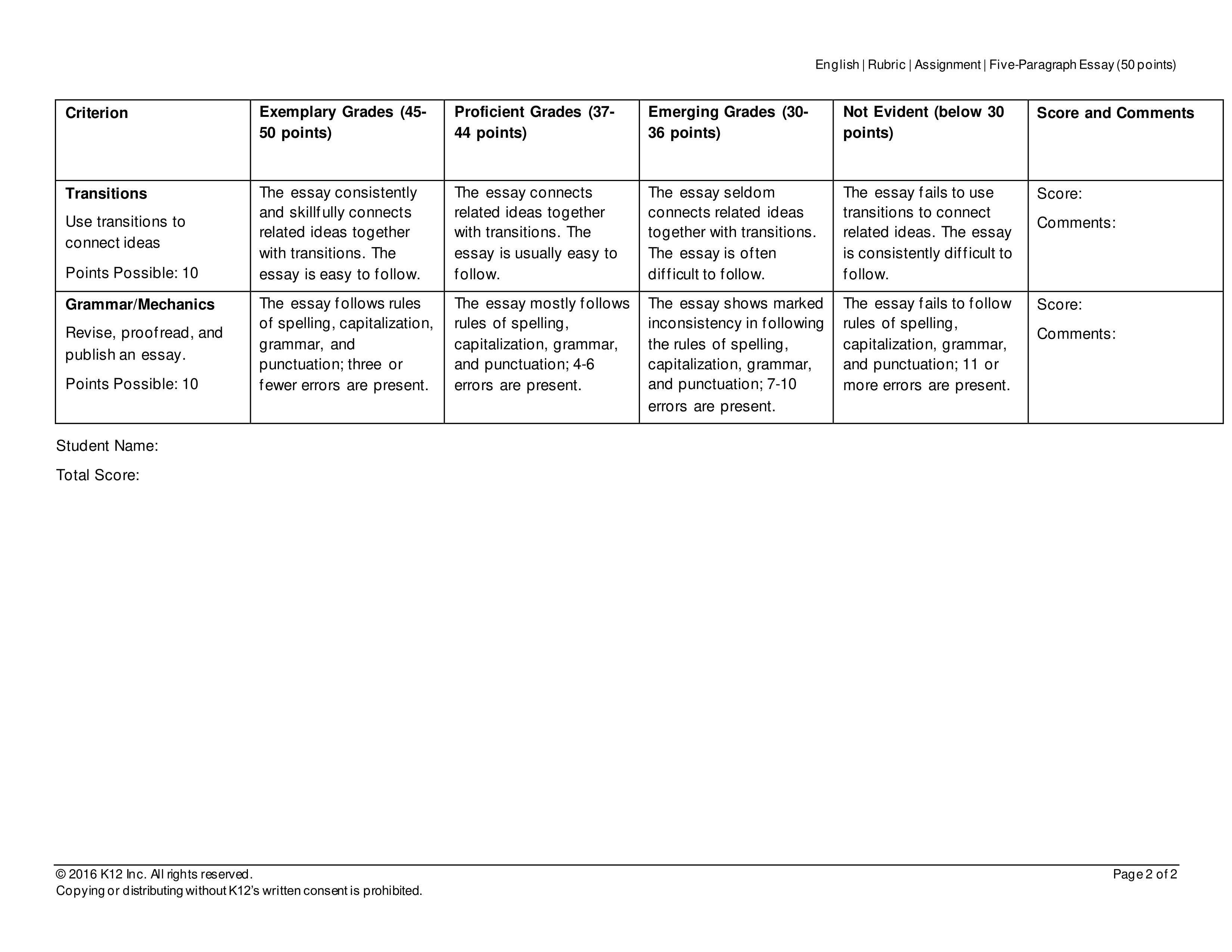 Transitions: If the essay is easy to follow and skillfully connetcts related ideas together with transitions then the student would score in what category