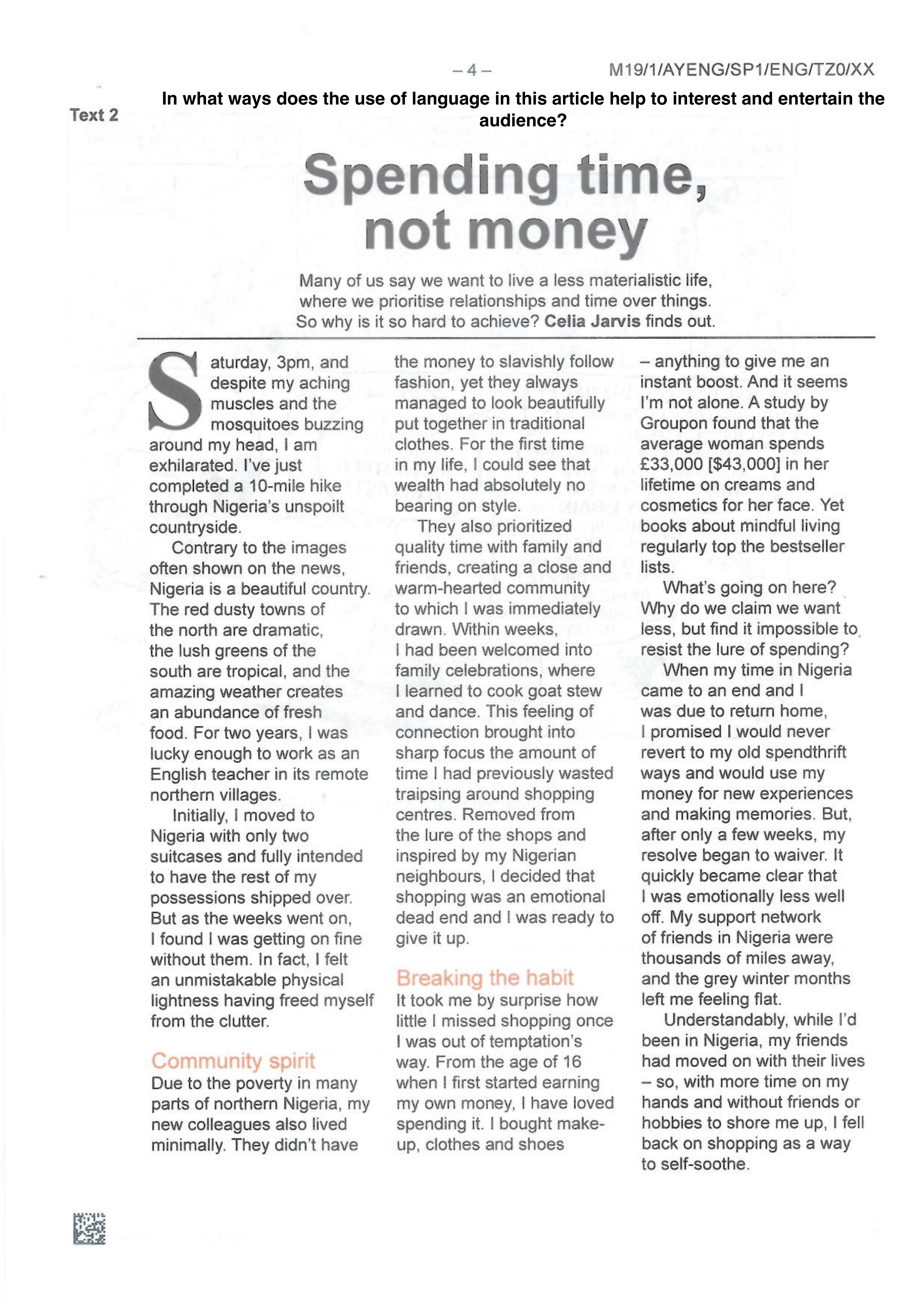 Select at least ONE of the aims that you will be using when writing Paper 1