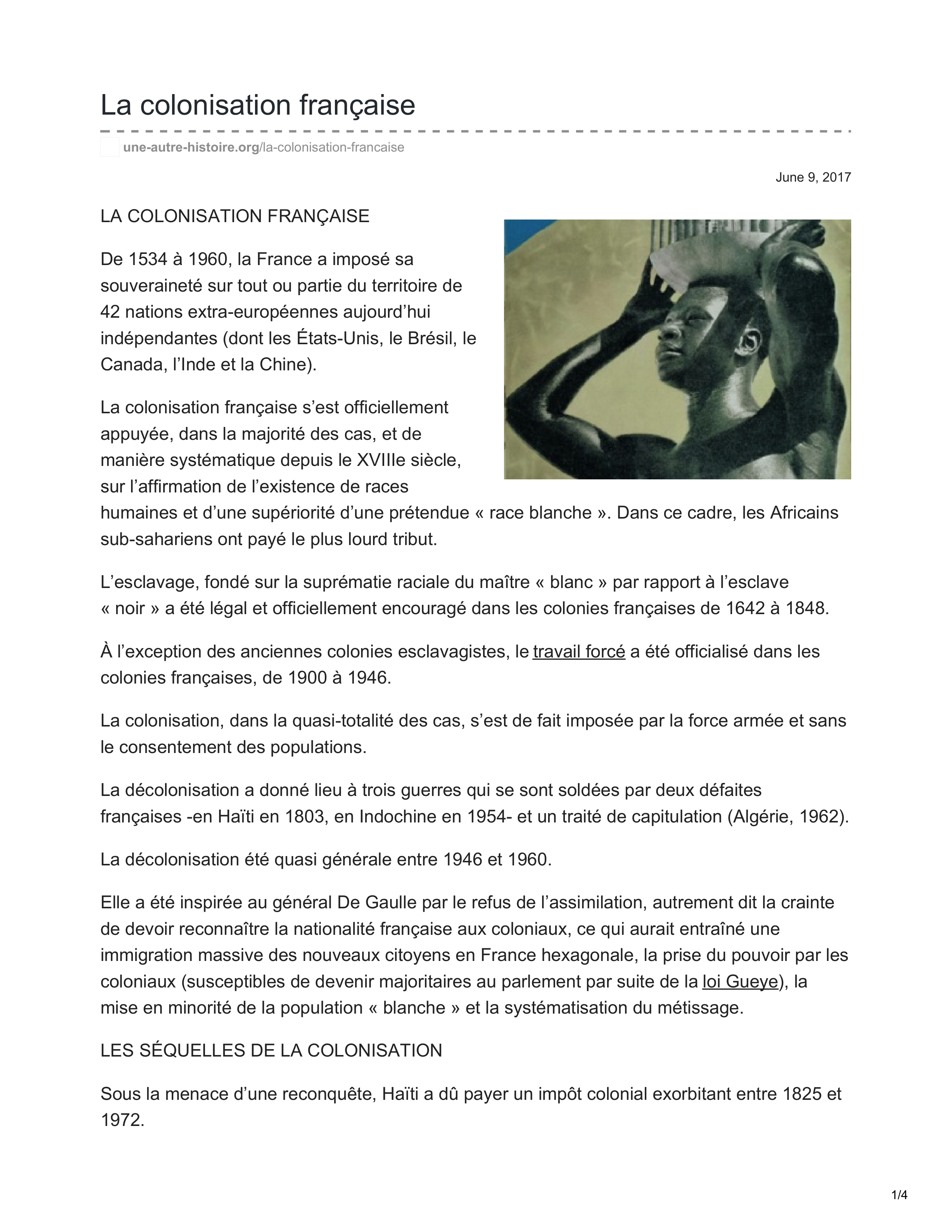 Est-ce que la France et les autres pays colonisateurs devraient subir des conséquences de leur rôle dans la déstablisation systématique de leurs anciennes colonies? Serait-il possible de réparer ou de compenser les dégâts du projet colonial? Exprimez-vous.