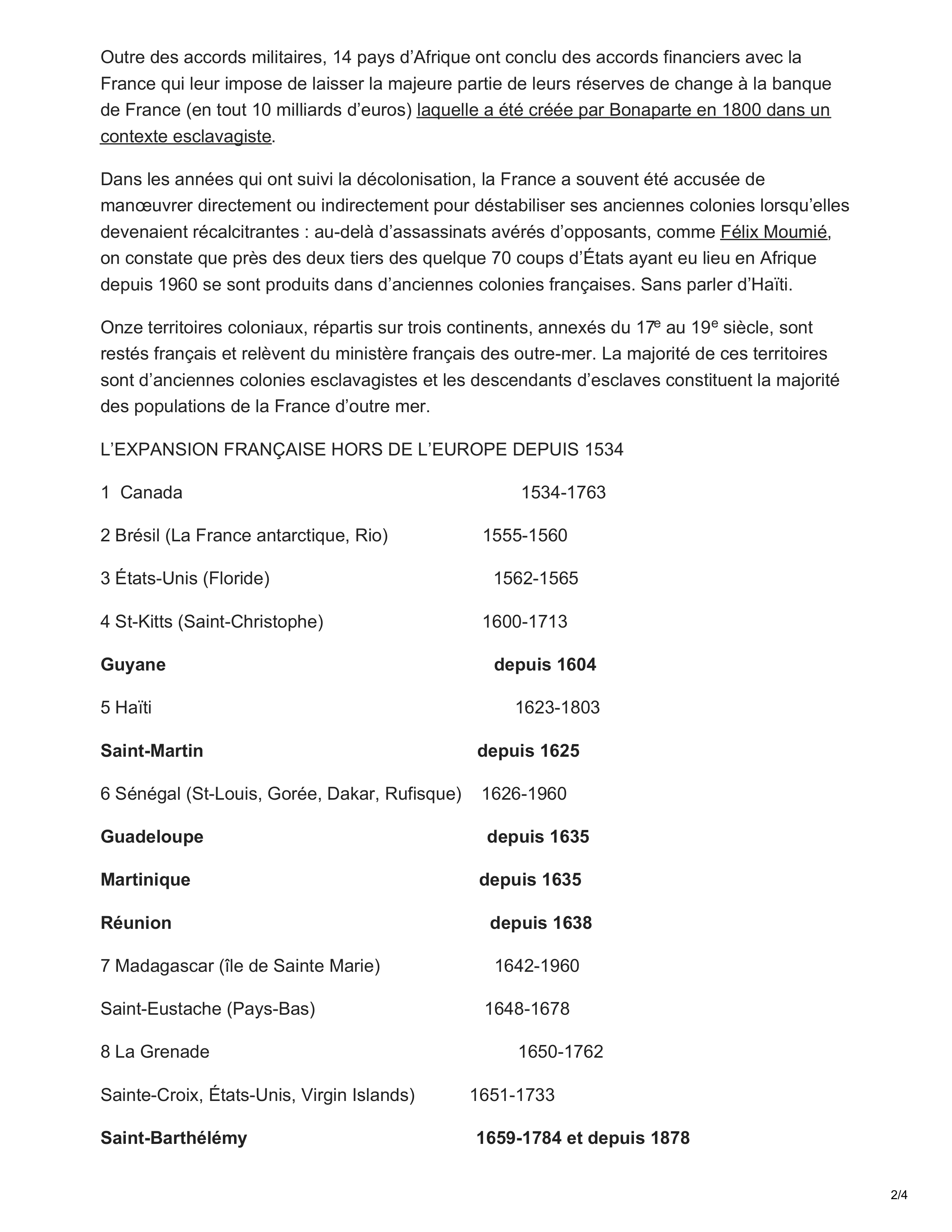 À votre avis, comment est-ce que ces impôts et ces accords financiers auraient affecté les anciennes colonies après la décolonisation? Pouvez-vous imaginer?