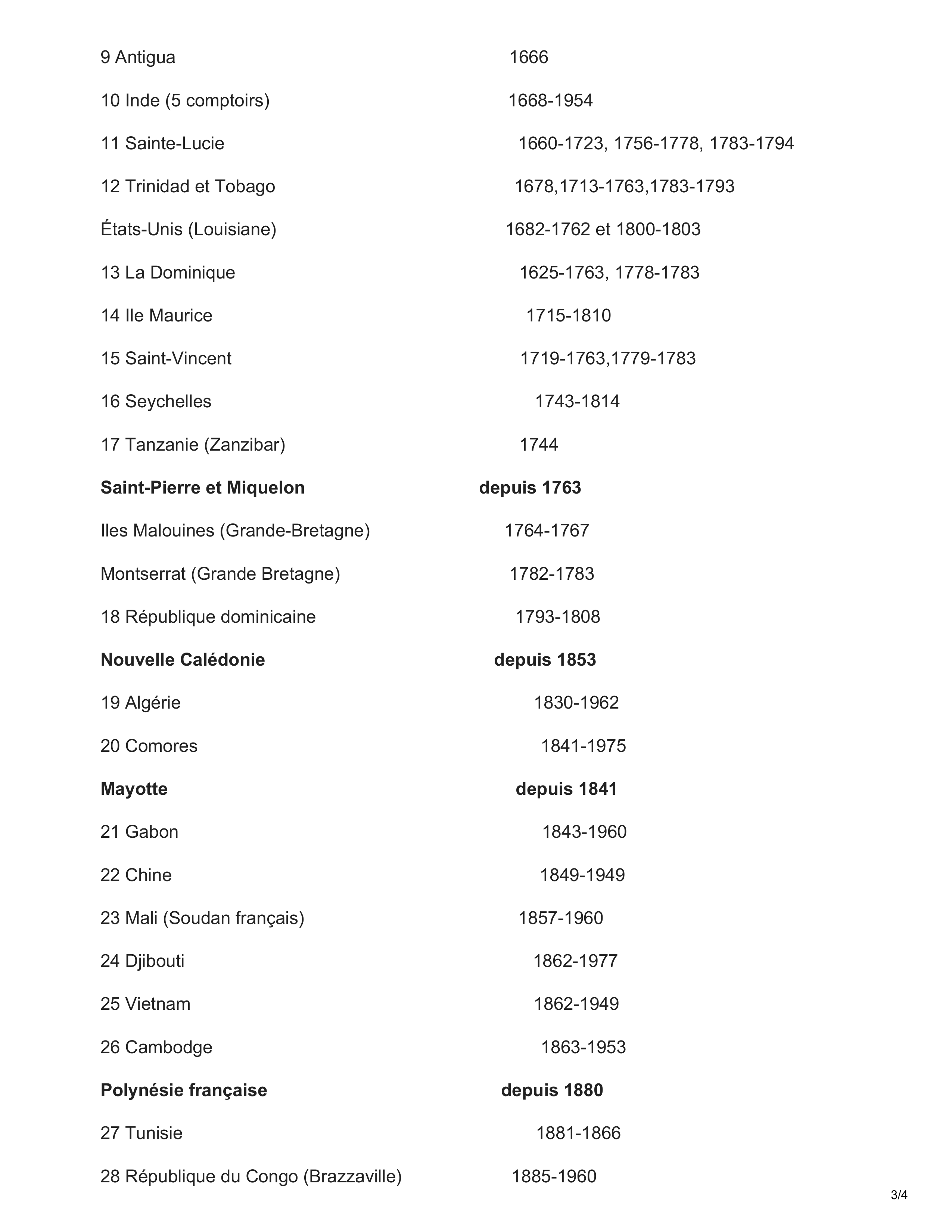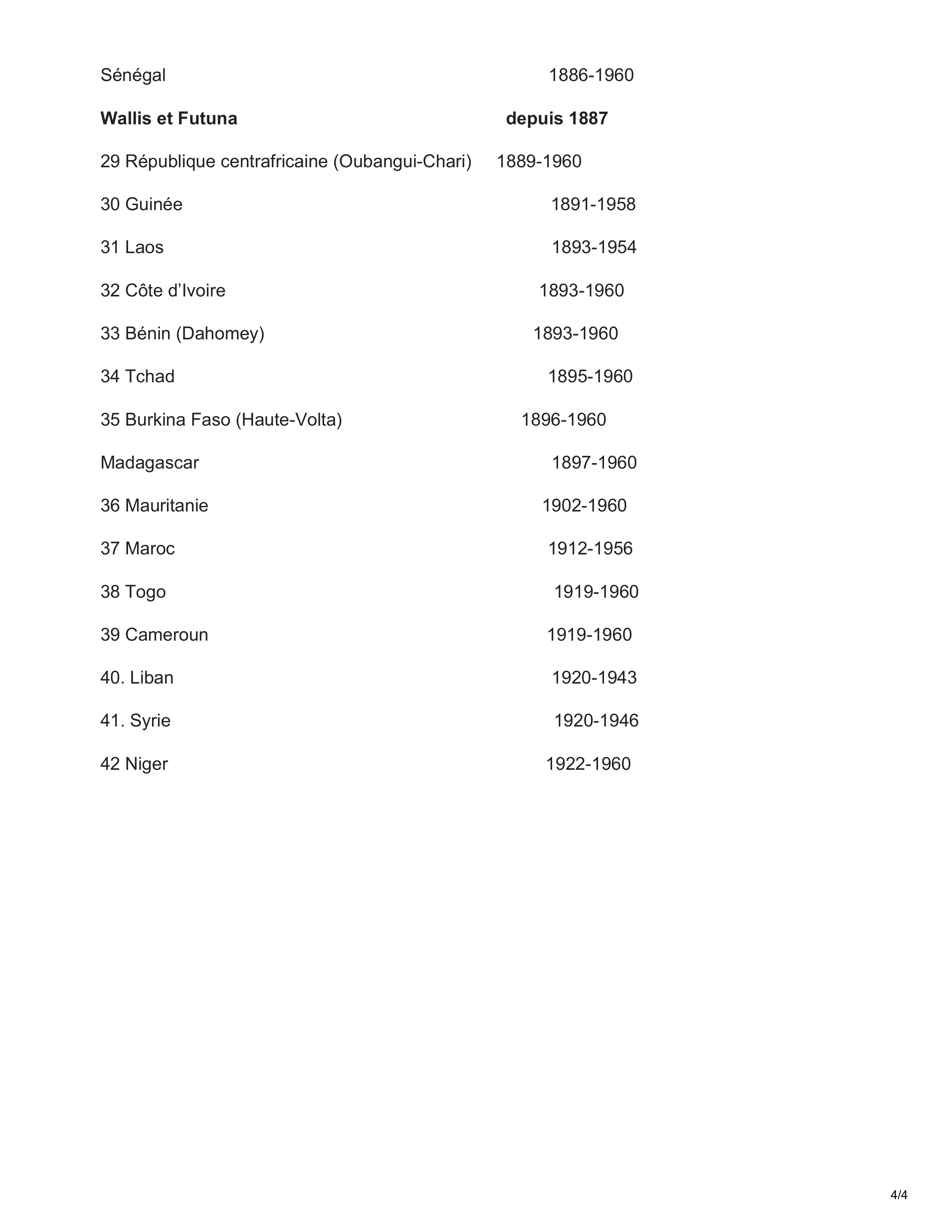 Comme c'est écrit sur l'emploi du temps, vous devez choisir un des pays sur la liste et faire un tout petit peu de recherche sur son histoire coloniale. Venez en classe avec 3 à 4 phrases à partager avec votre voisin.