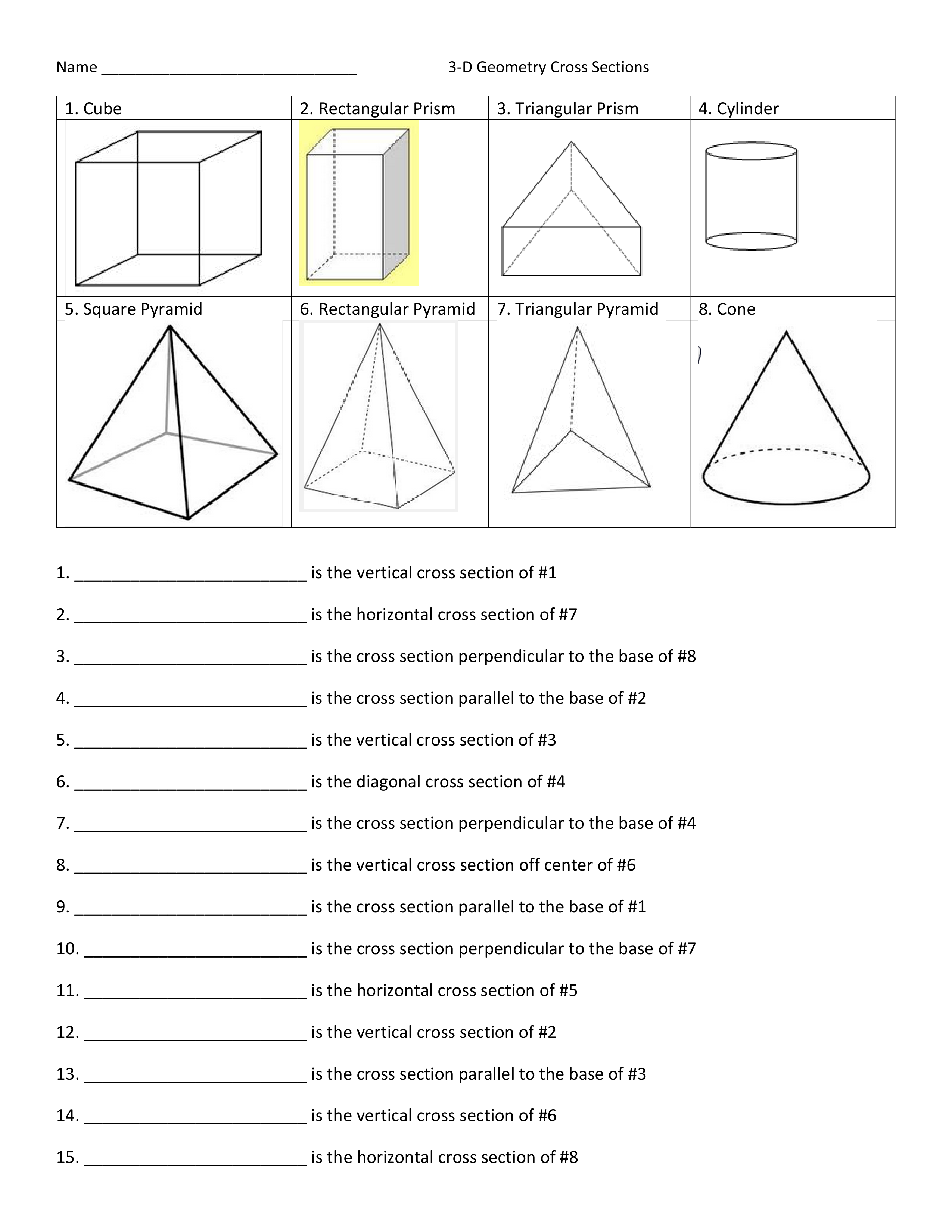 What is cross section parallel to the base of # 3?