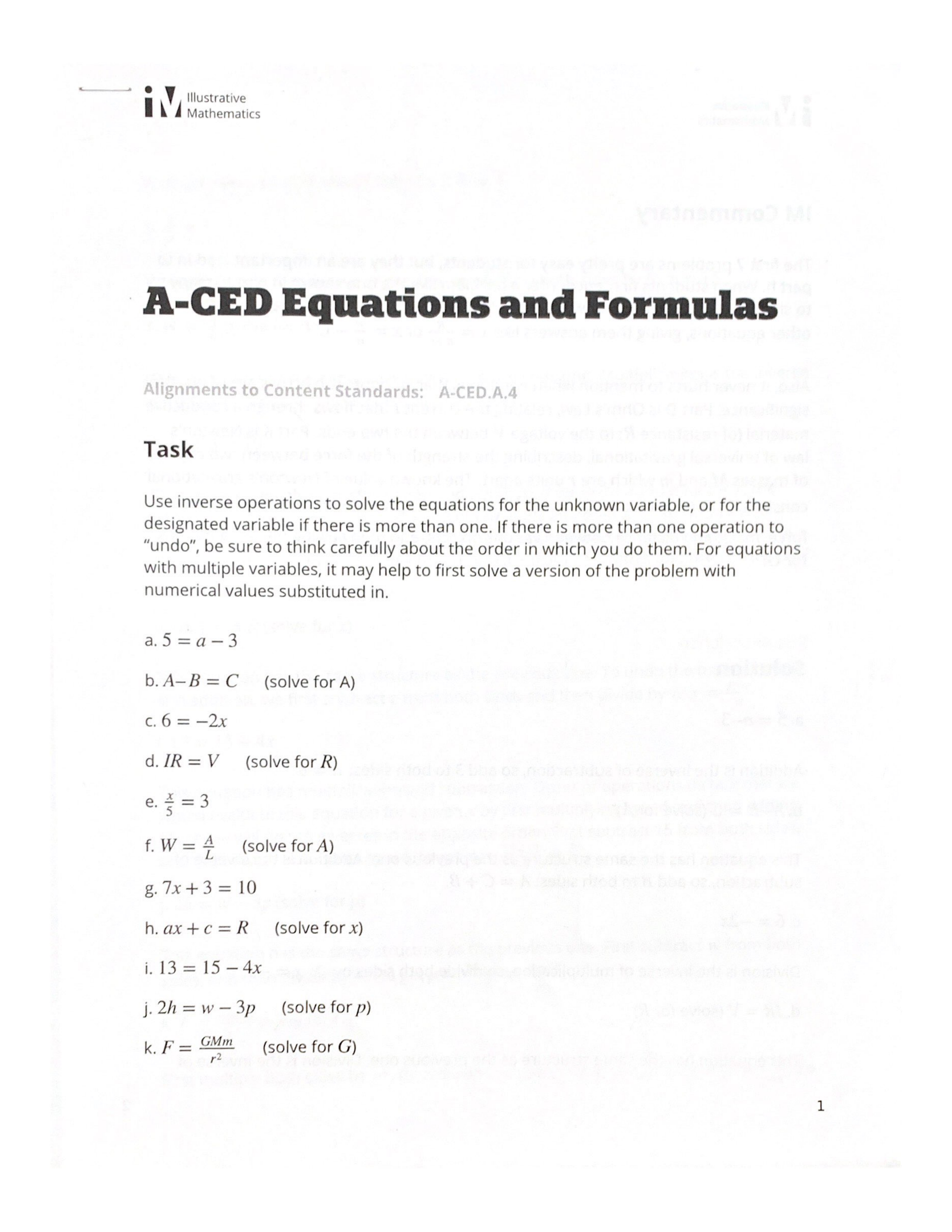 Assignment 003U2-Literal Equations (Focus Lesson)