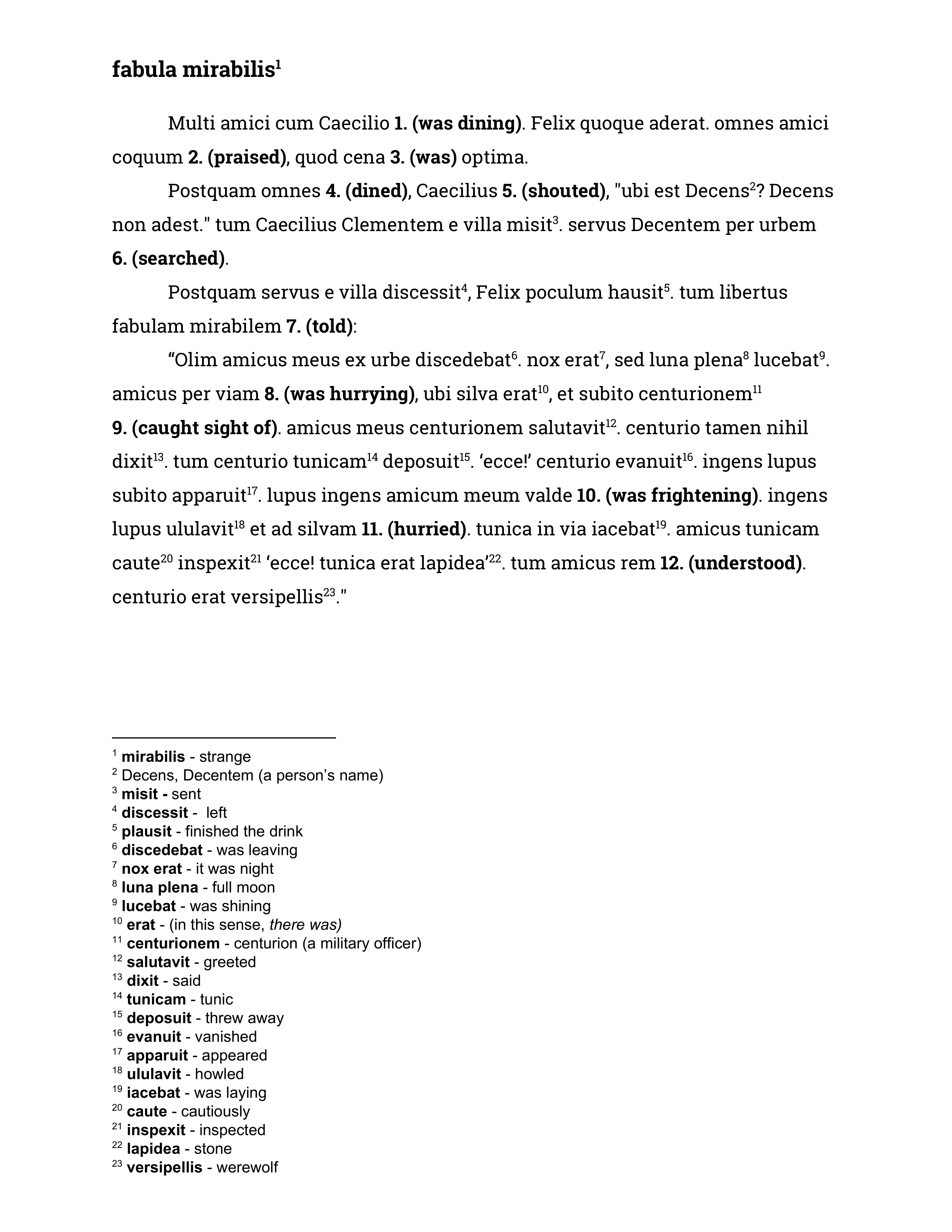 Stage 7: Fabula Mirabilis - CLOZE reading