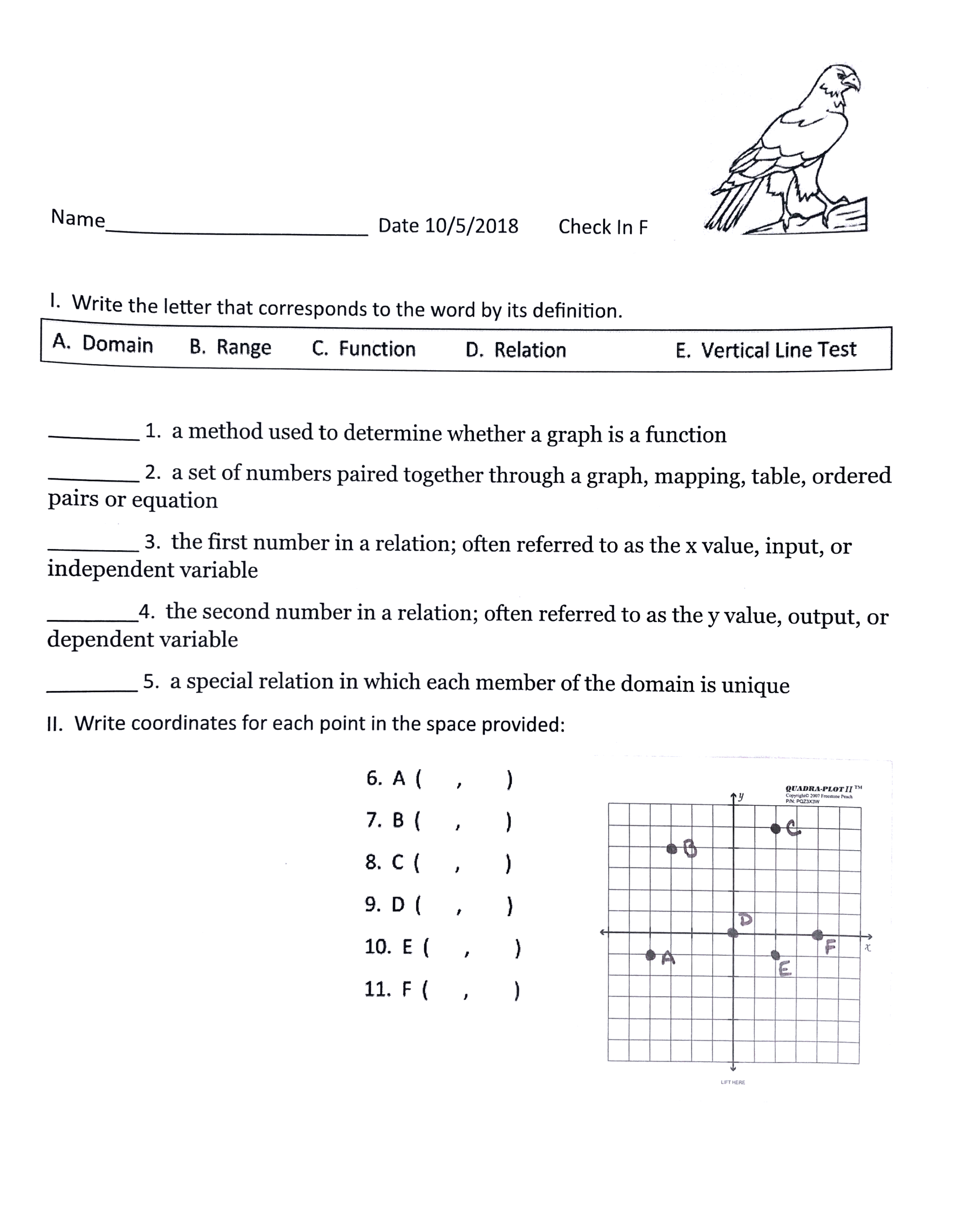 the first number in a relation; often referred to as the x value, input, or independent variable.