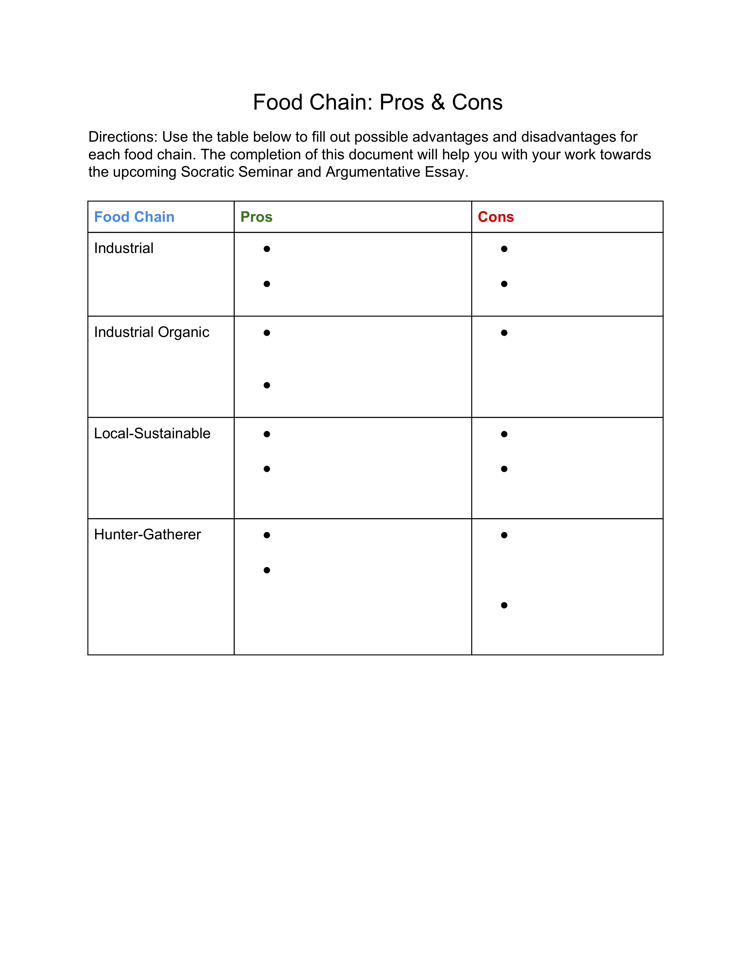The HG food chain is the most historically founded chain in our evolutionary process. Give an explanation of why it is a good choice.