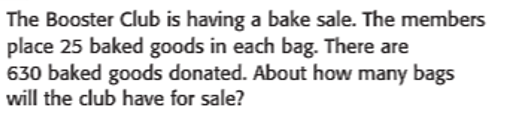 Sample Answer: 12/4 = 3 ; about 3 bags