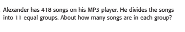 Sample Answer: 400/40 = 10 ; about 10 [unit]