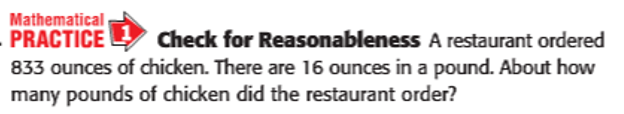 Sample Answer: 1200/40 = 30 ; about 30 pounds