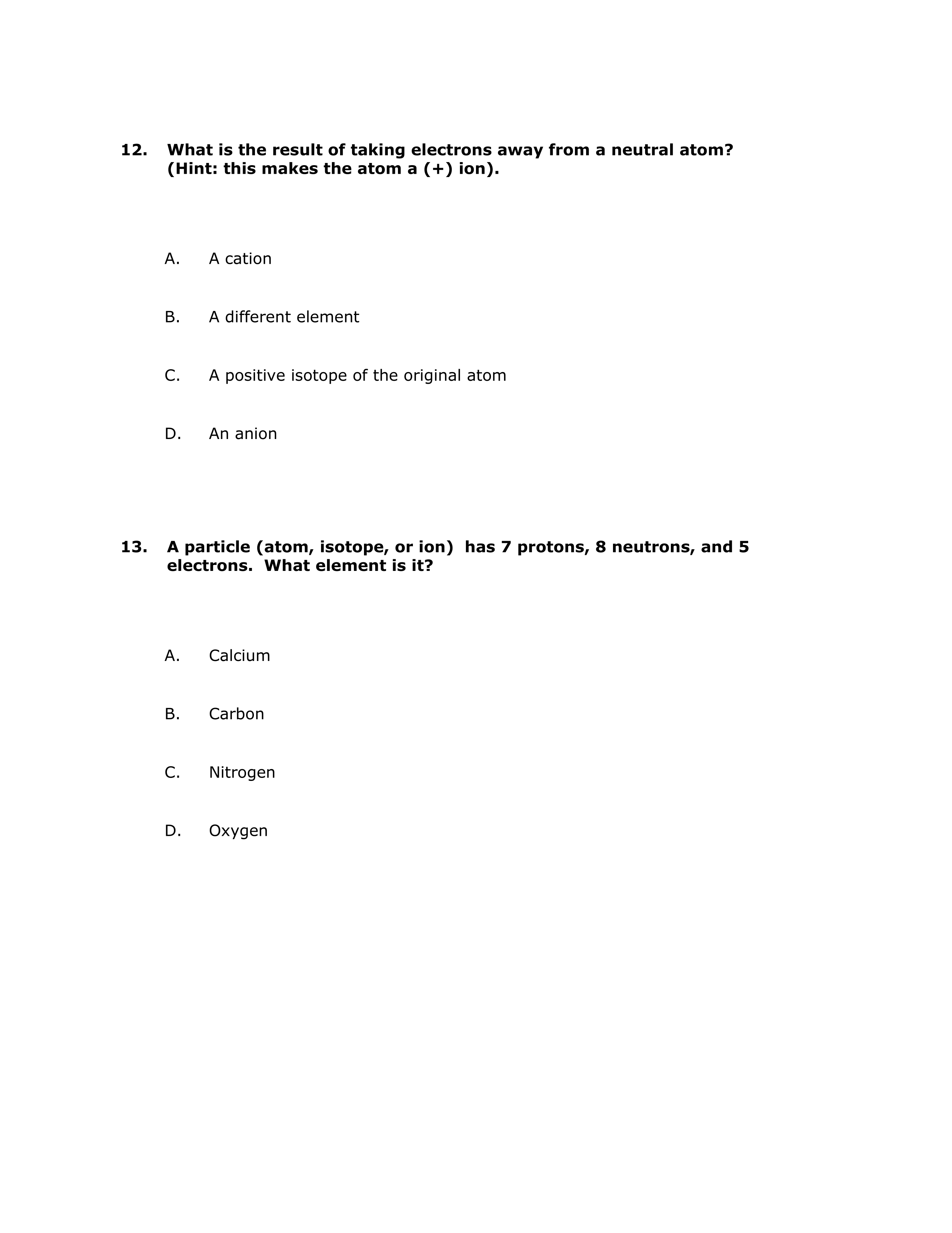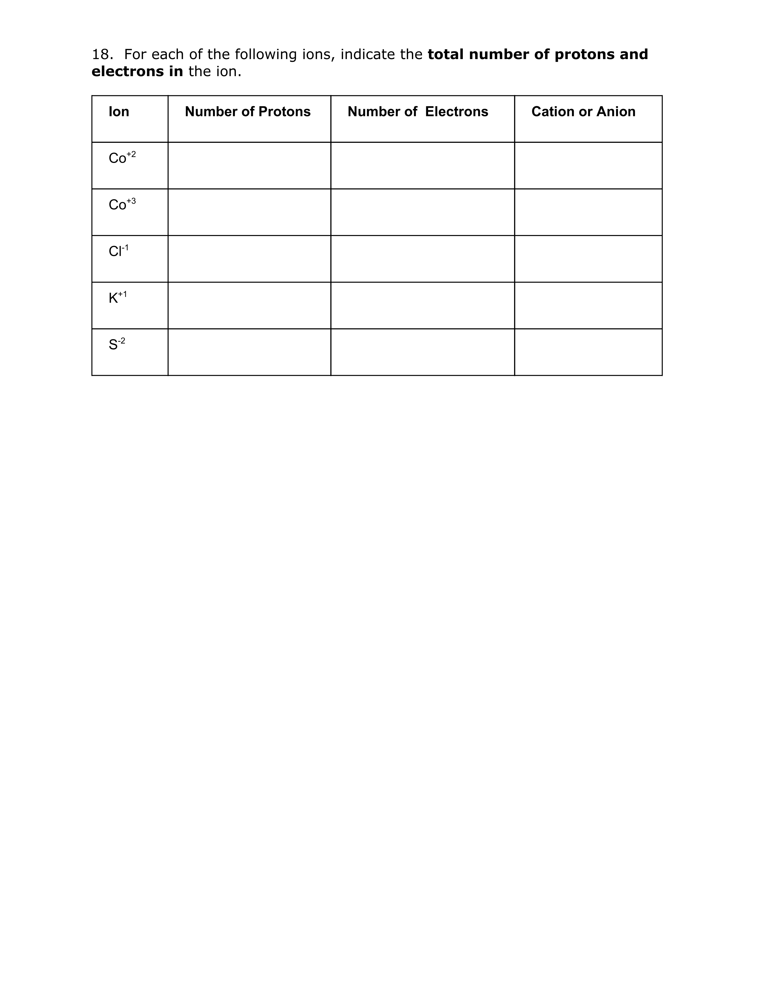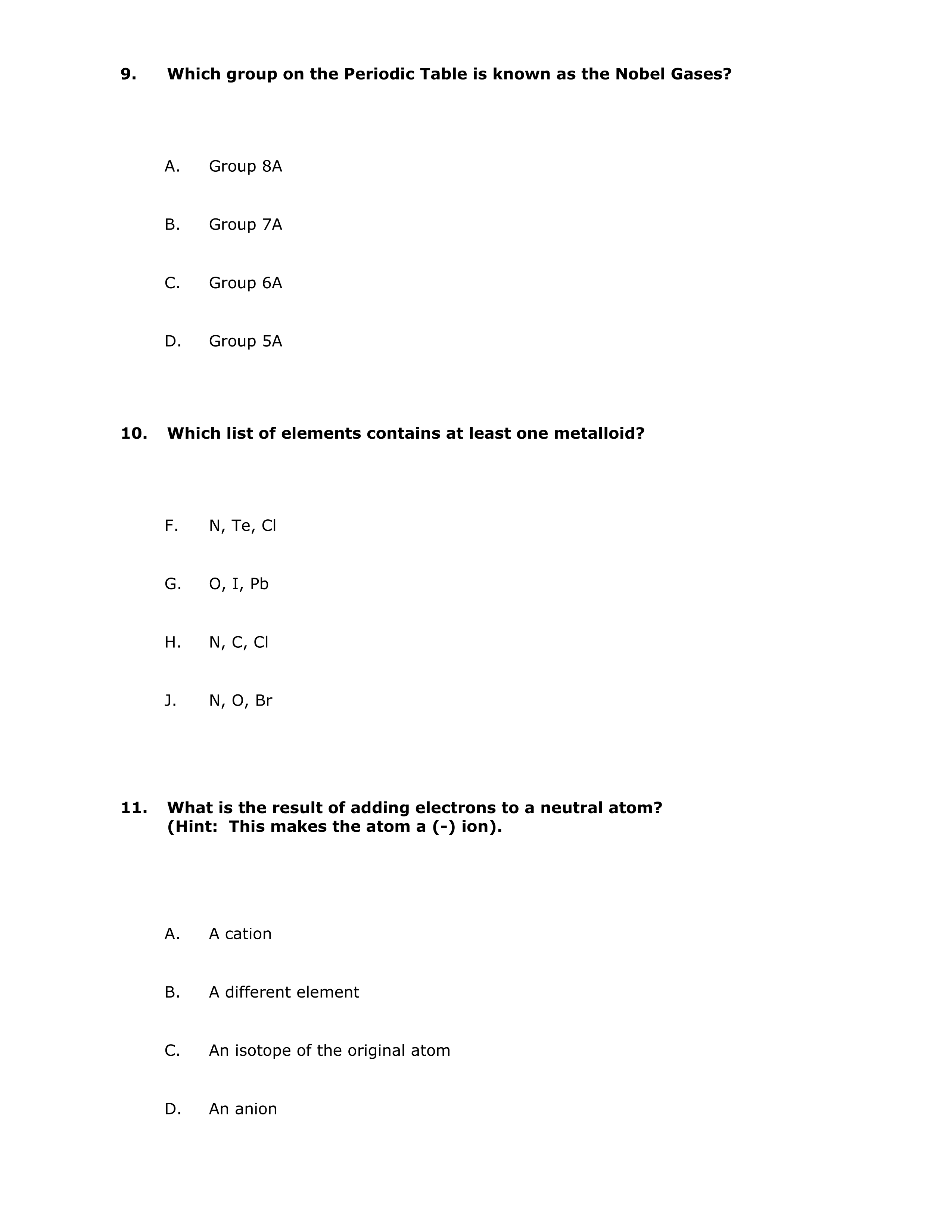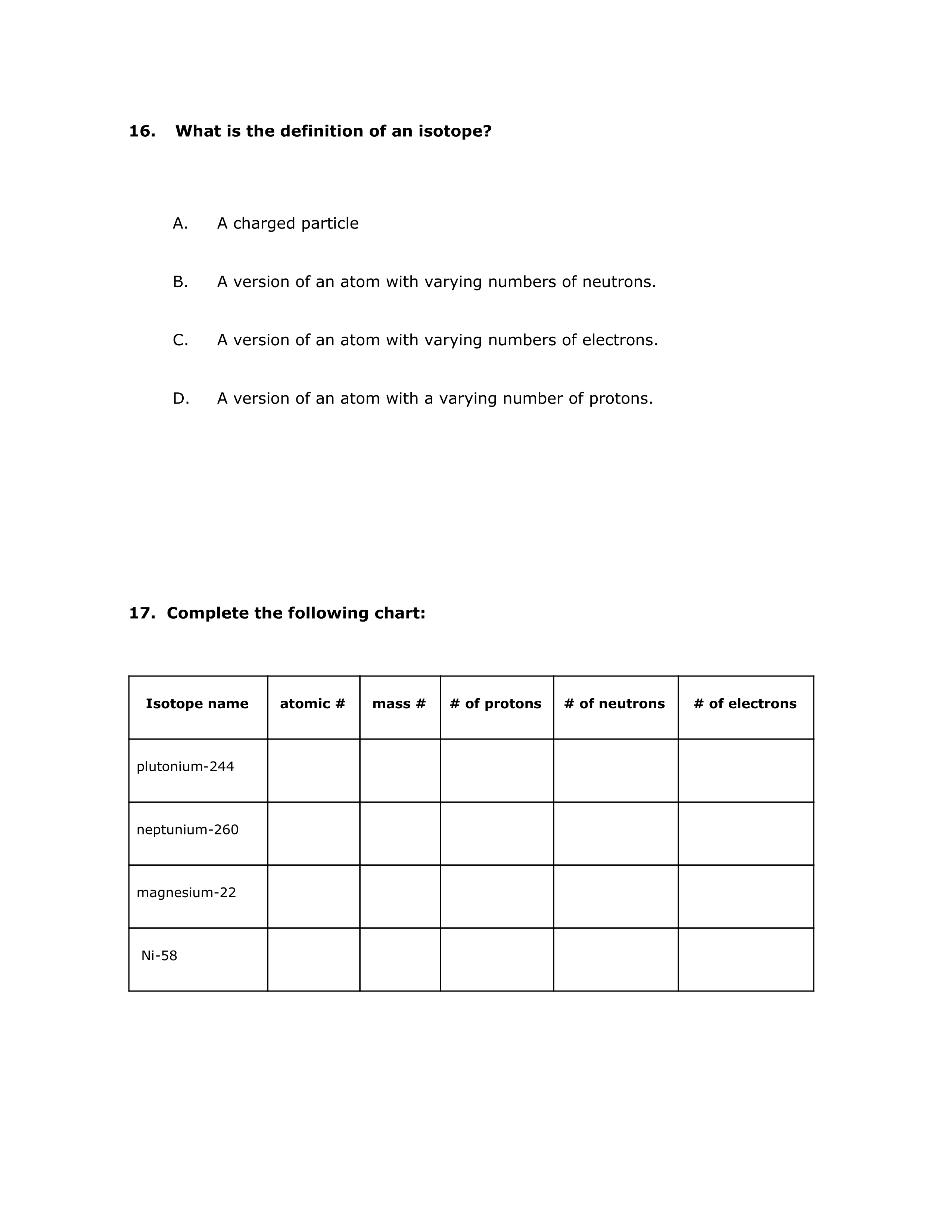 TEST: Periodic Table, Atoms, Ions, and Isotopes