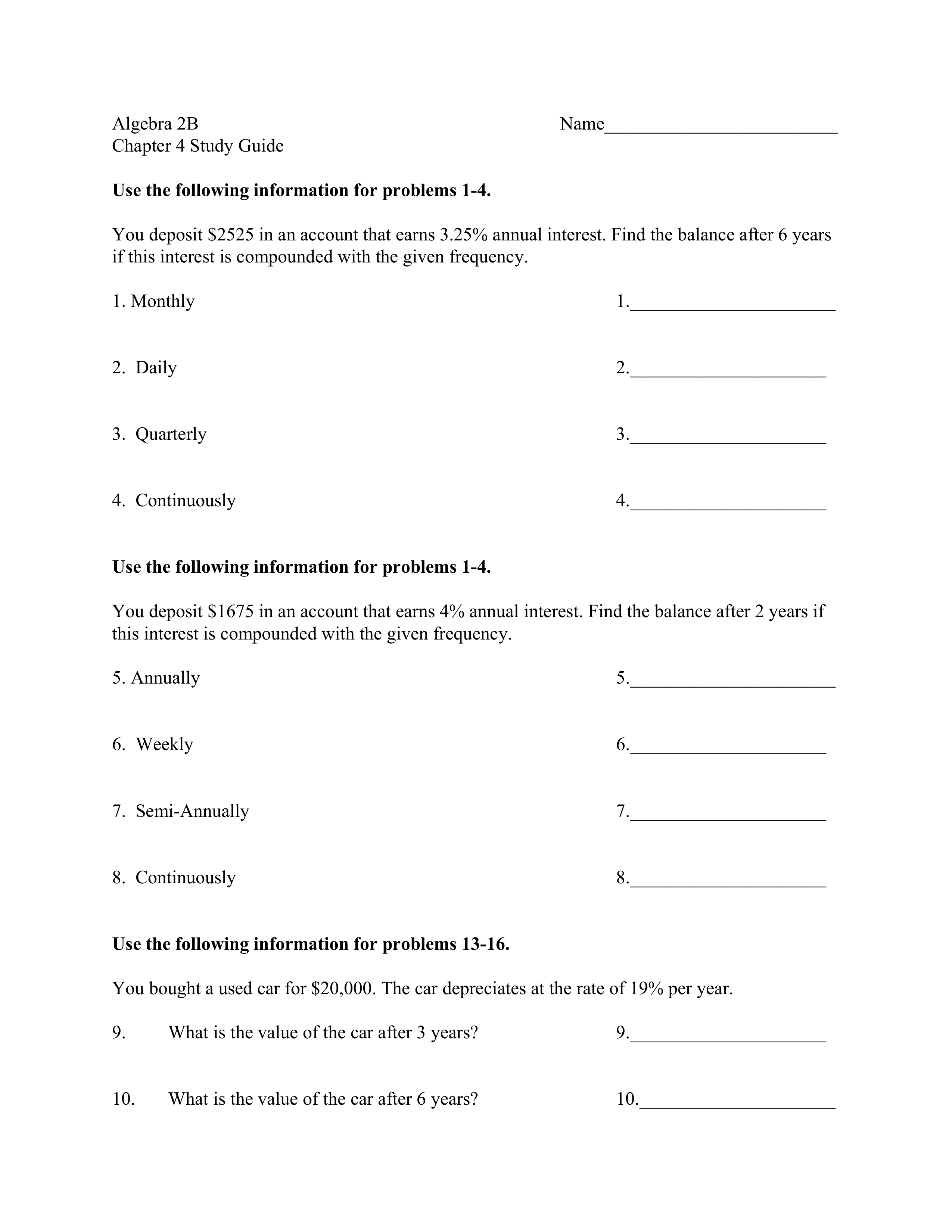 Alg 2B Chapter 4 Study Guide