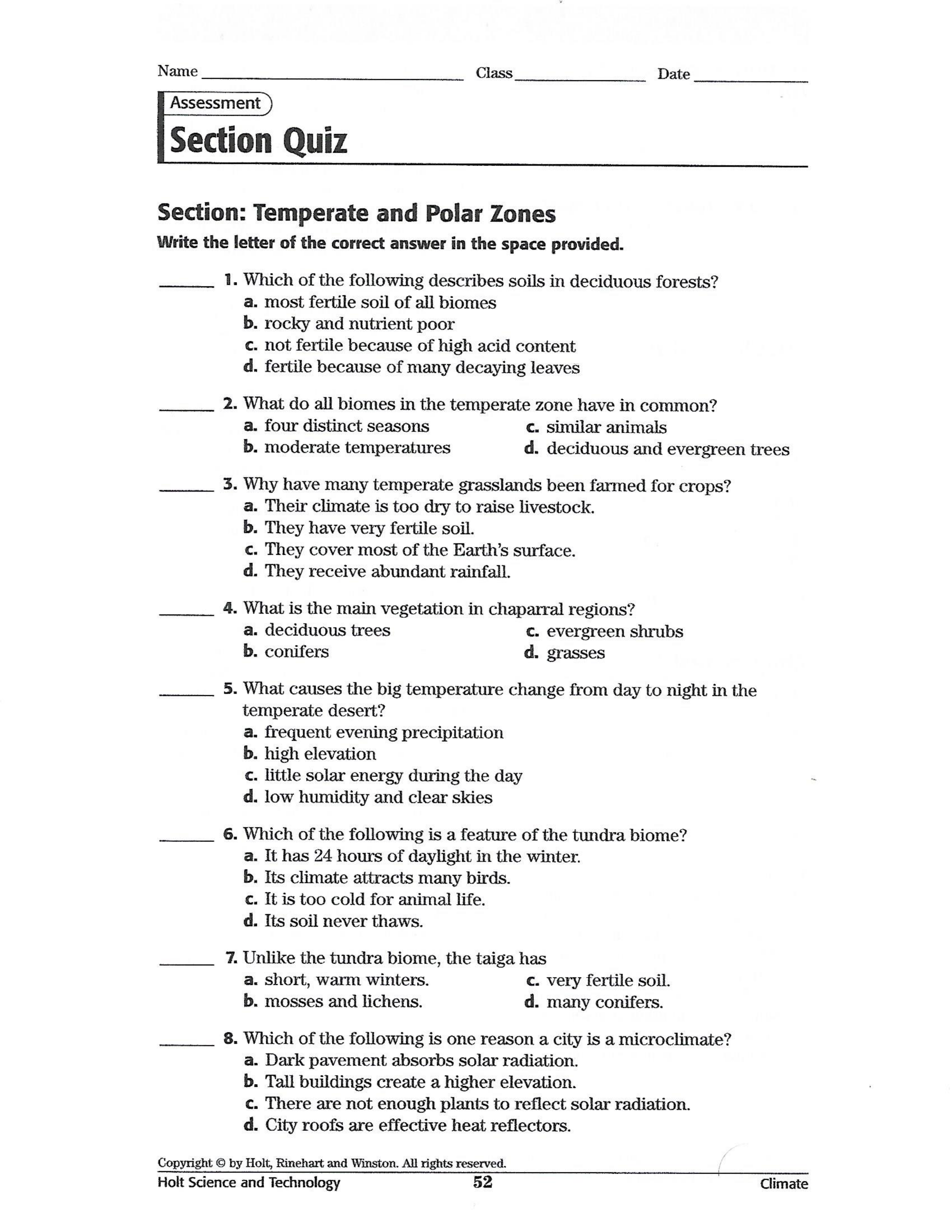 Temperate and Polar Zones Quiz