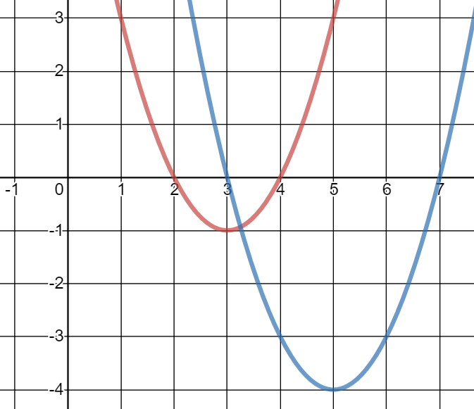 This translations maps the red parabola onto the blue parabola. What is the value of k?