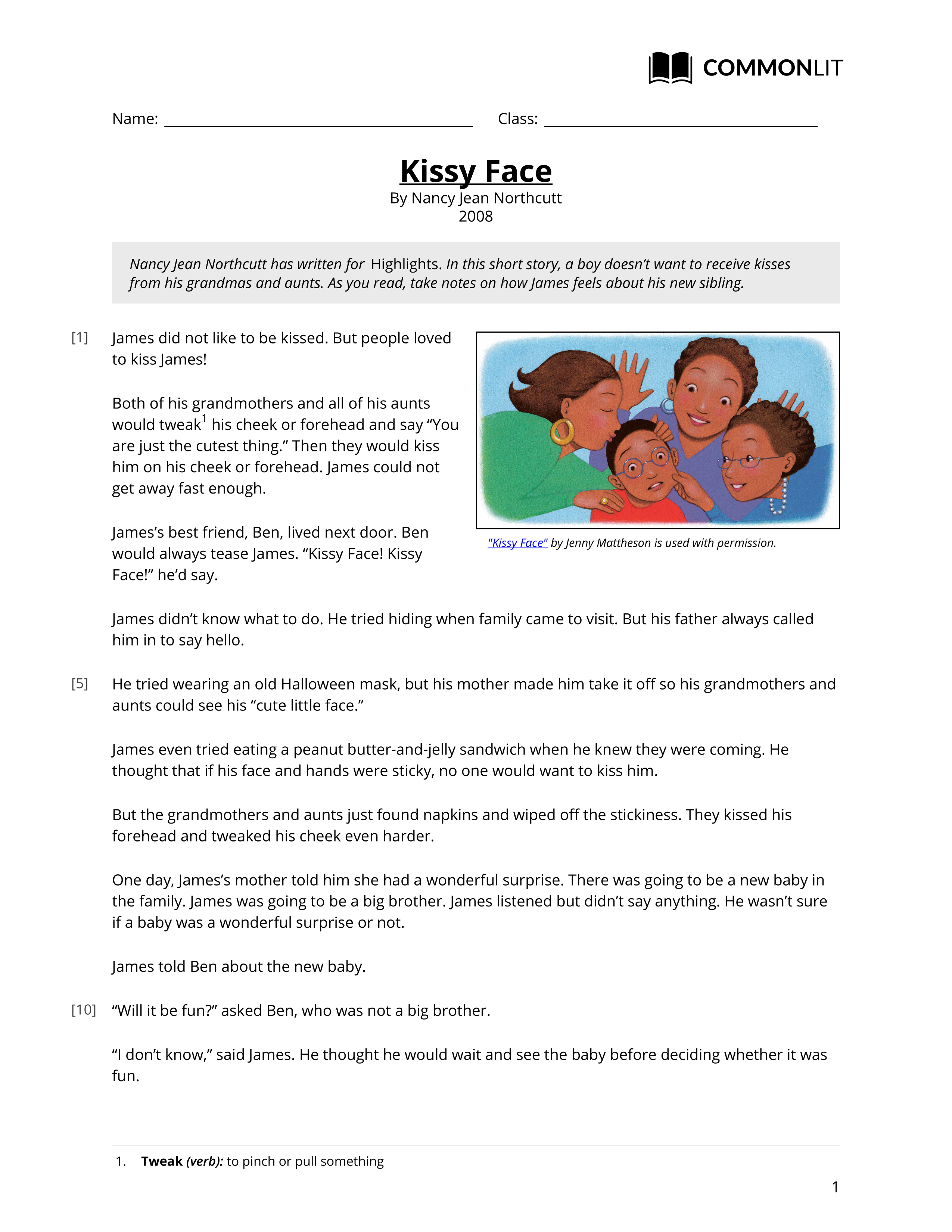 Which of the following describes why the aunts and grandmas kiss James and tweak his cheeks?