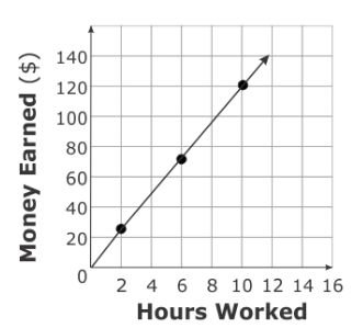 The graph shows the number of hours Kinsley worked and the amount of money she earned.