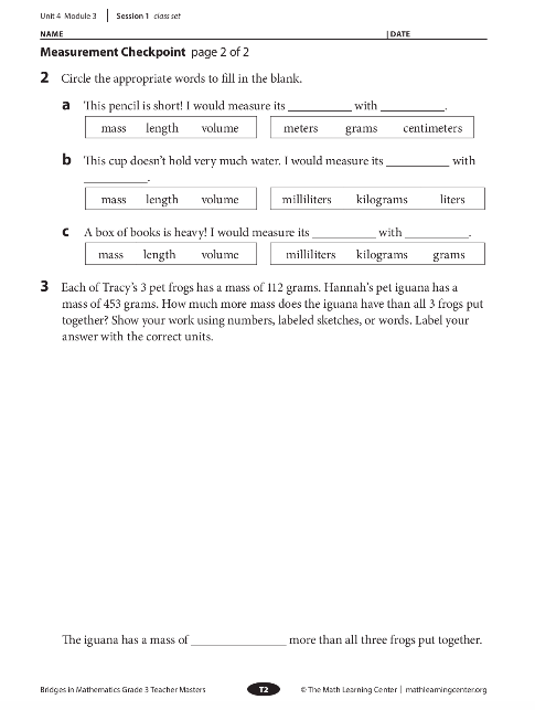 The iguana has a mass of ____ more than all three frogs put together. Label your answer with the correct units.