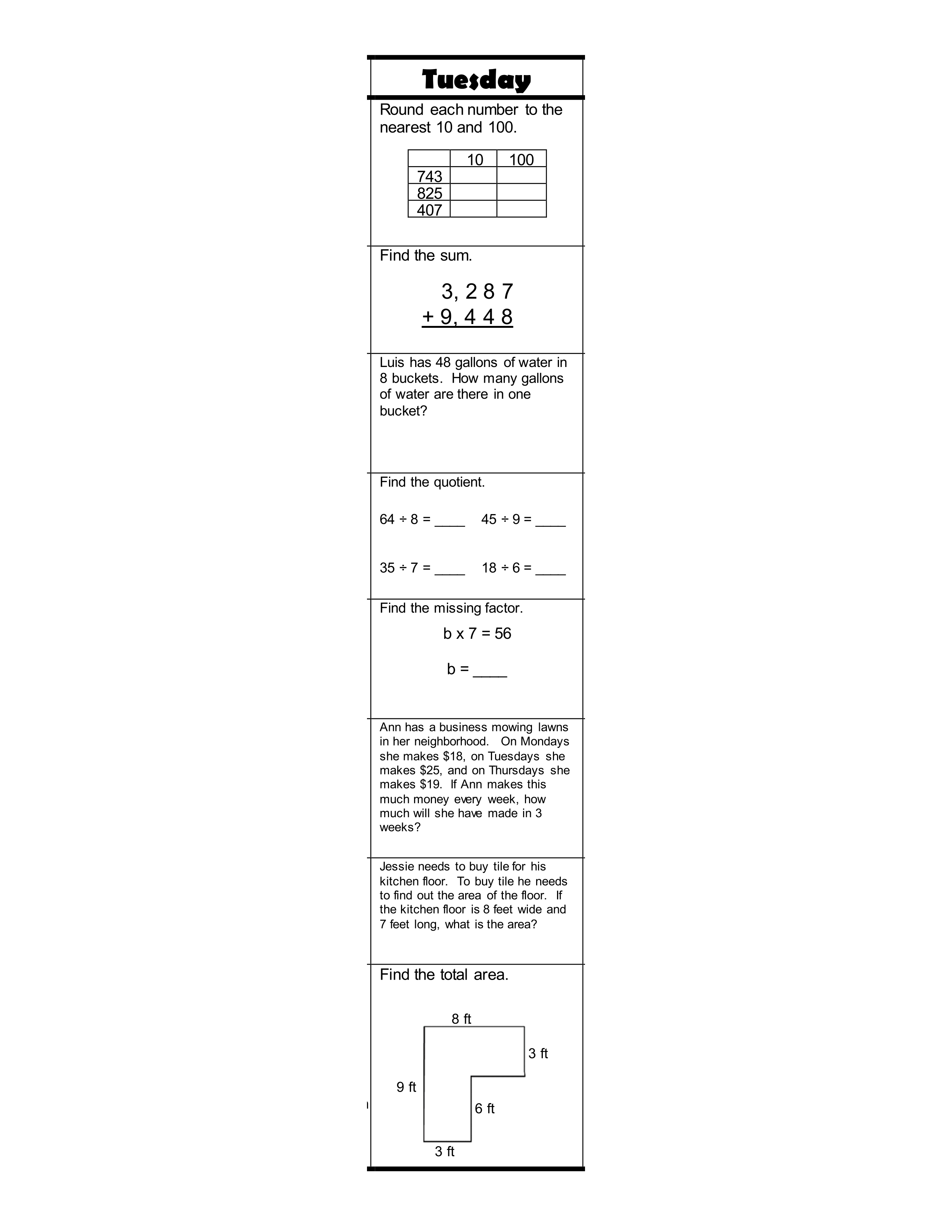 2-7 Tuesday Math MW