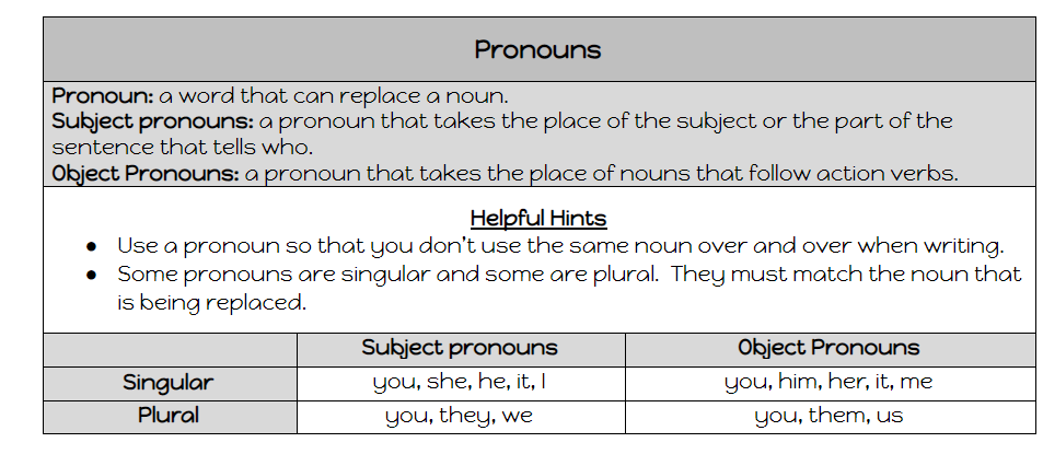 Grade 3- Pronouns (L.1.1b)