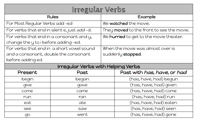 Grade 3- Regular and Irregular Verbs