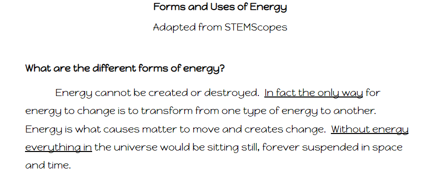 In fact the only way for energy to change is to transform from one type of energy to another.