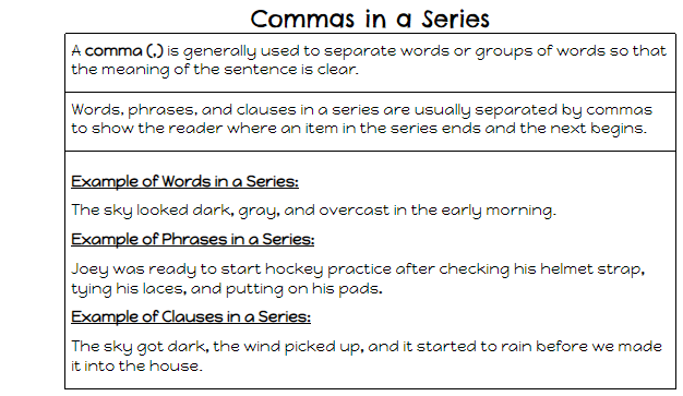 Grade 5- Commas in a Series (L.1.2a)