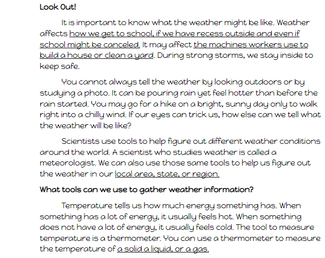 Weather affects how we get to school, if we have recess outside and even if school may be canceled.