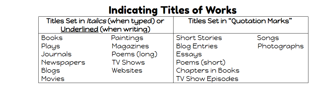 Grade 5- Indicating Titles of Works (L.1.2d)