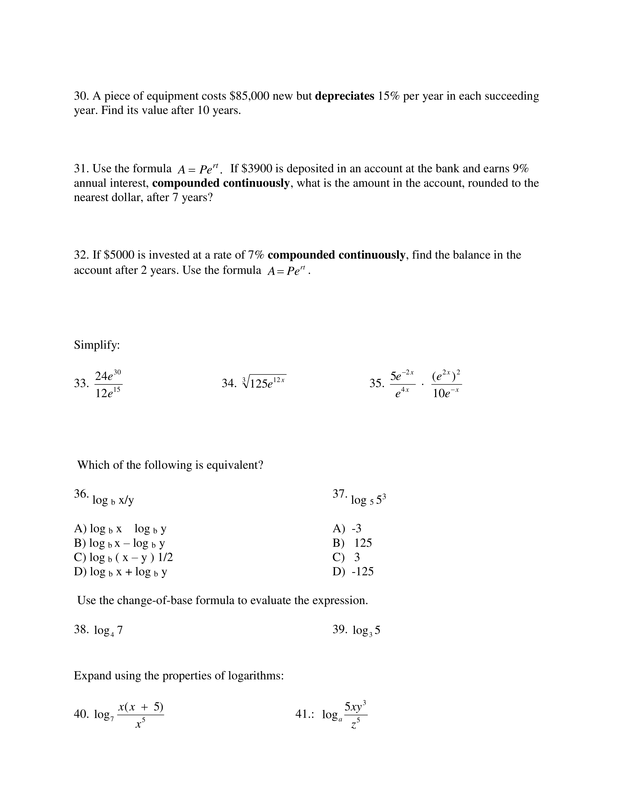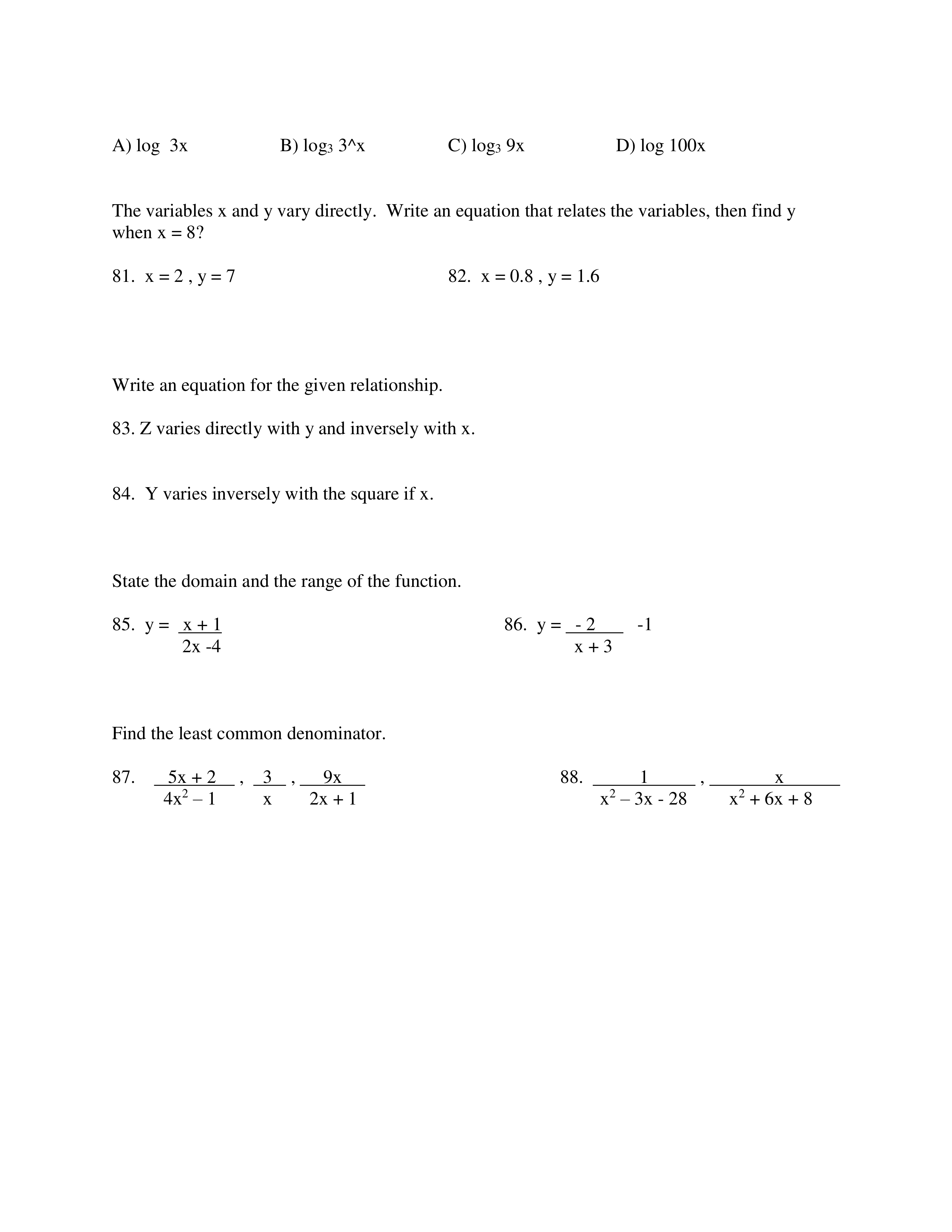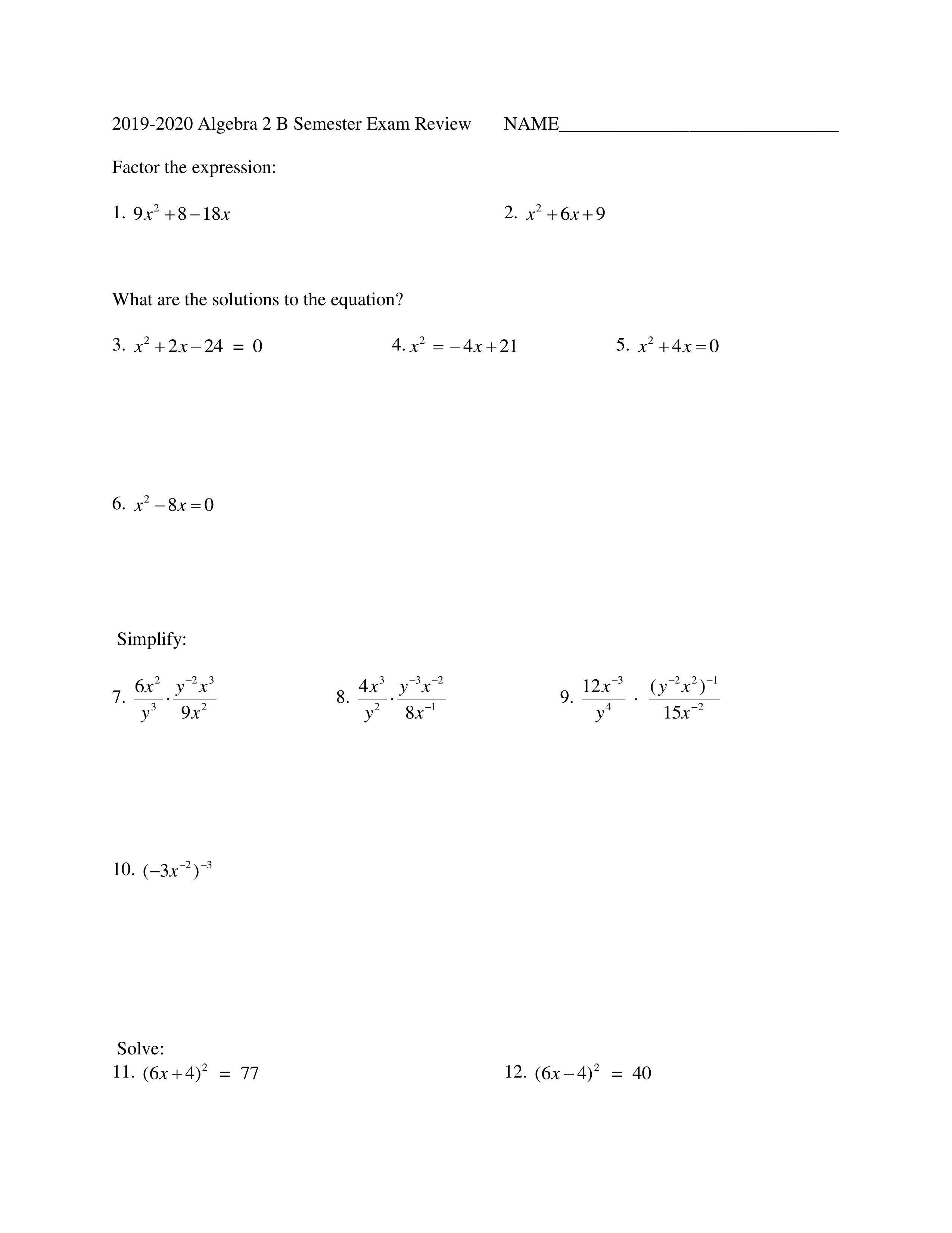 Alg 2B Midterm Review Packet