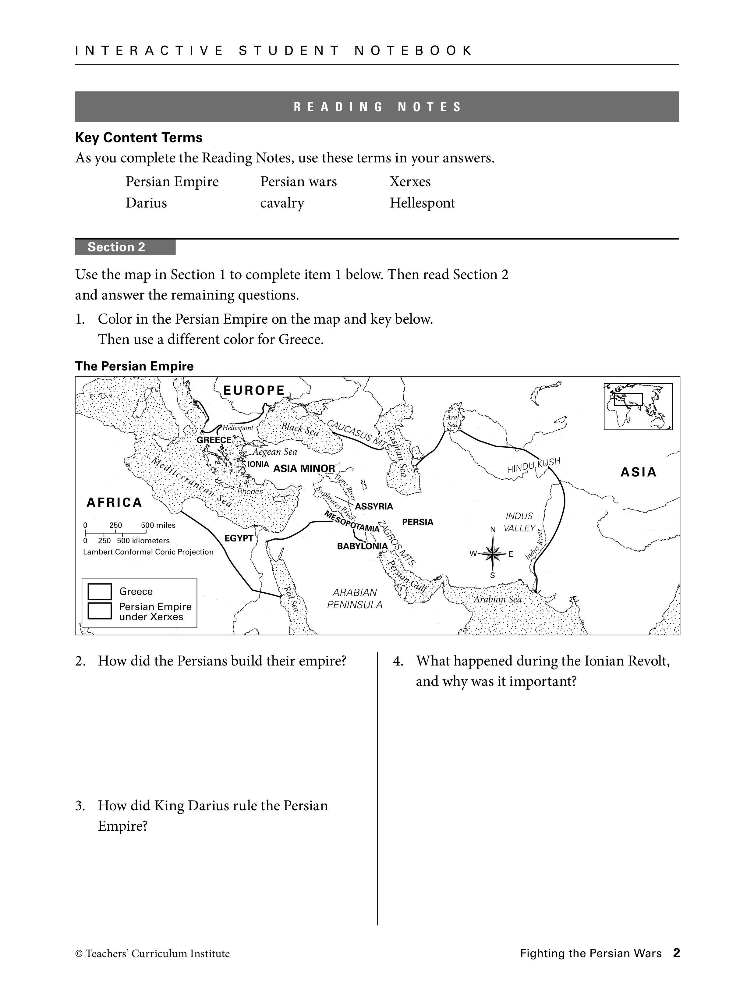 Color in the Persian Empire on the map and key below. Then use a different color for Greece.