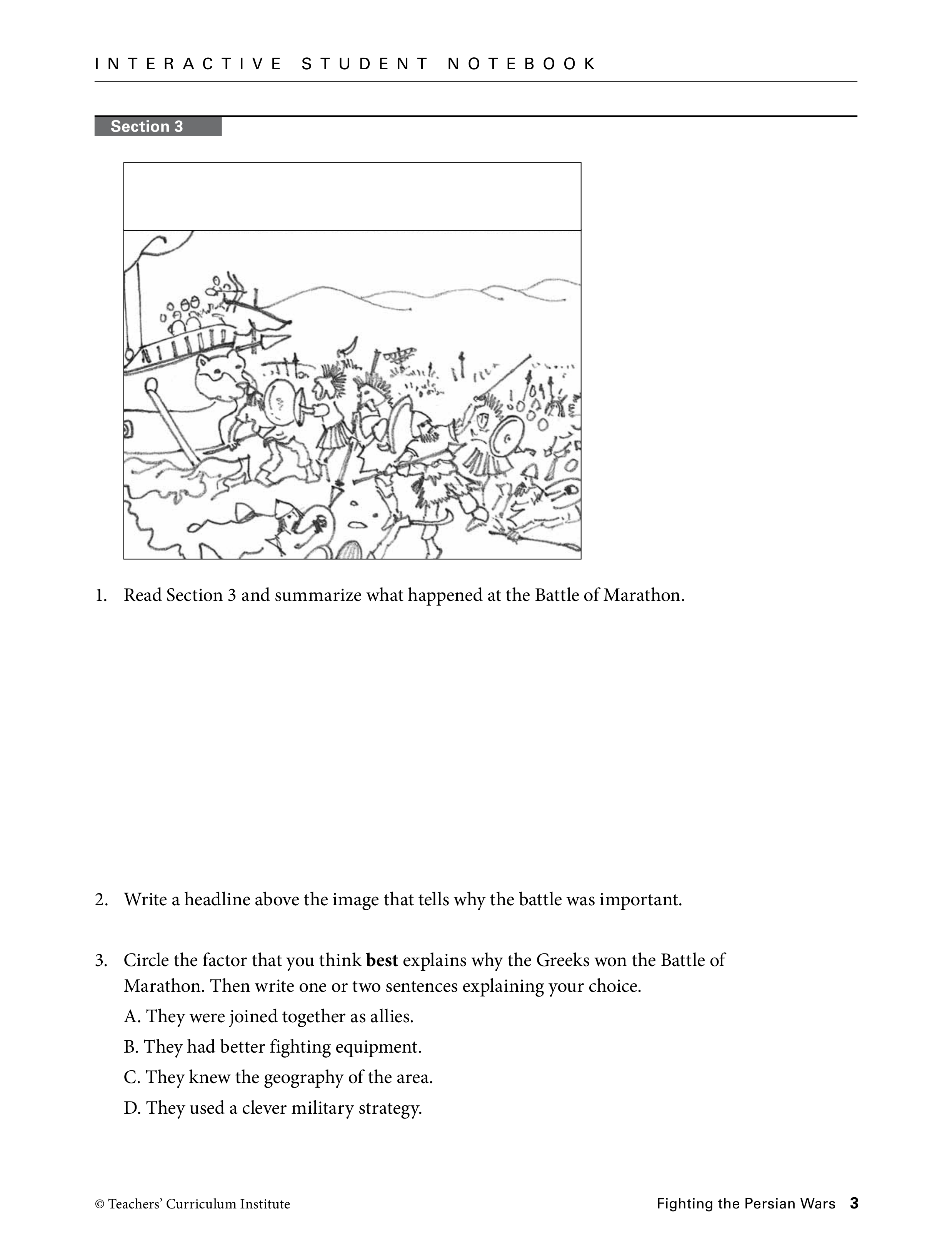 Circle the factor that you think BEST explains why the Greeks won the Battle of Marathon.
