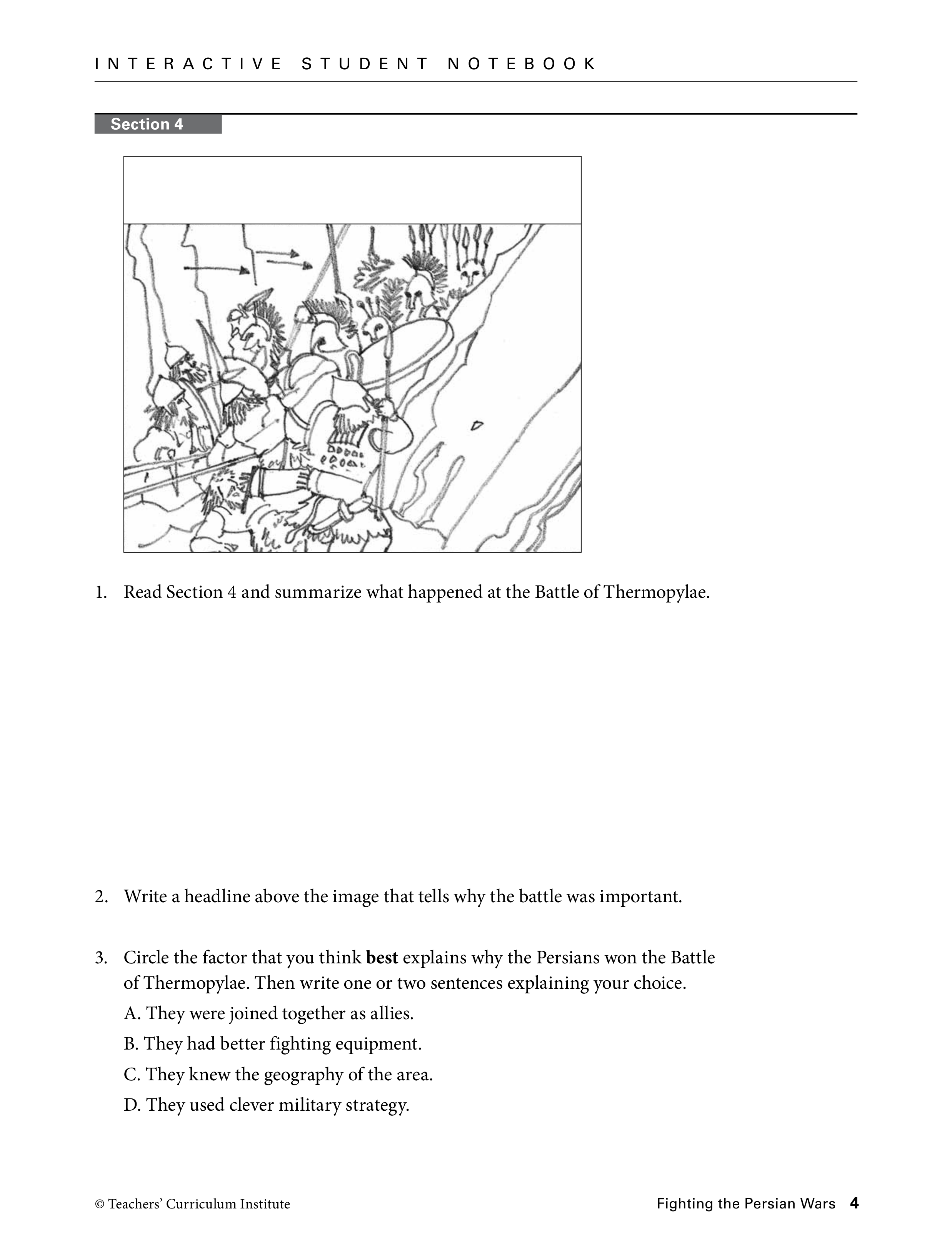 Read section 4 and summarize what happened at the Battle of Thermopylae.
