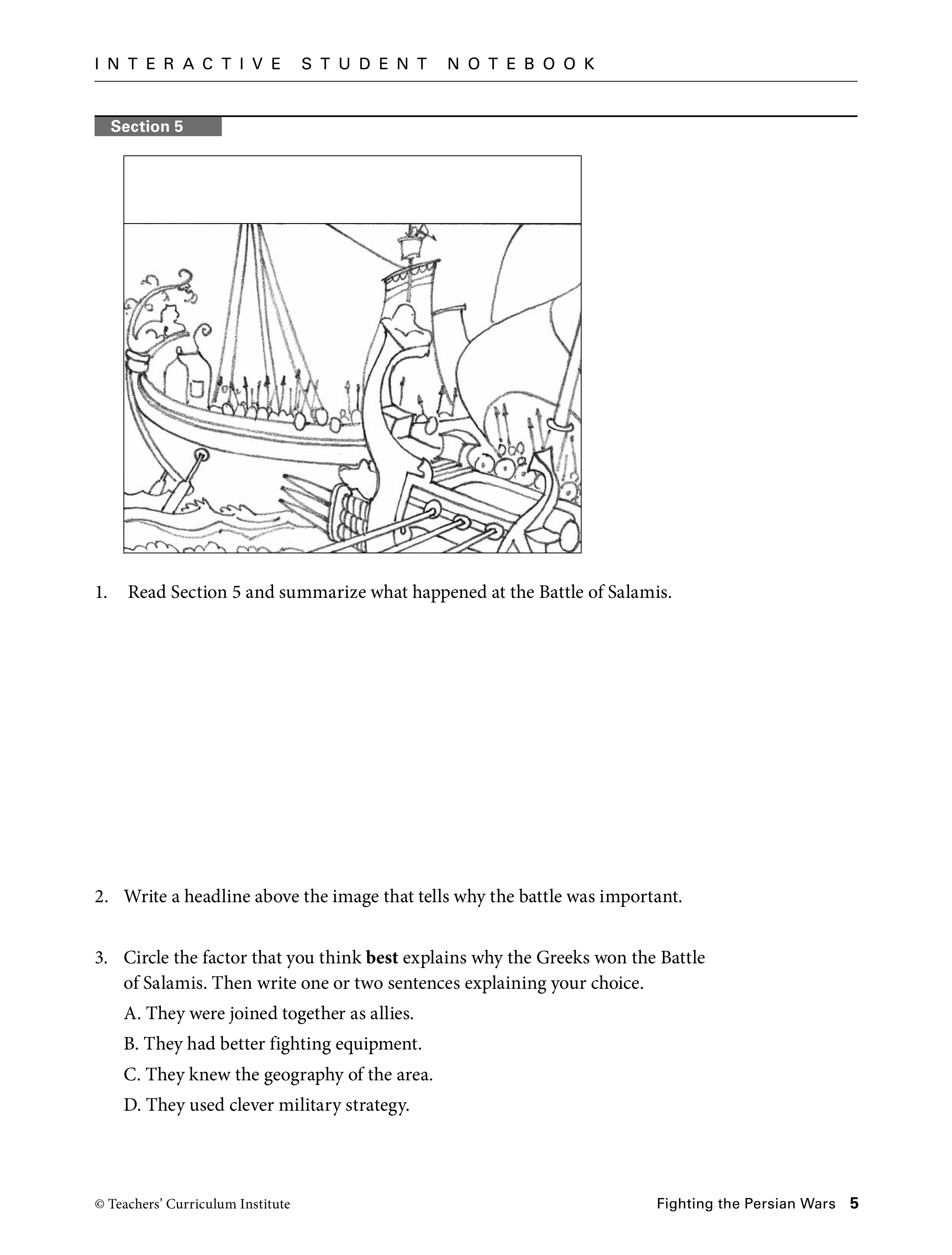 Read Section 5 and summarize what happened at the Battle of Salamis.