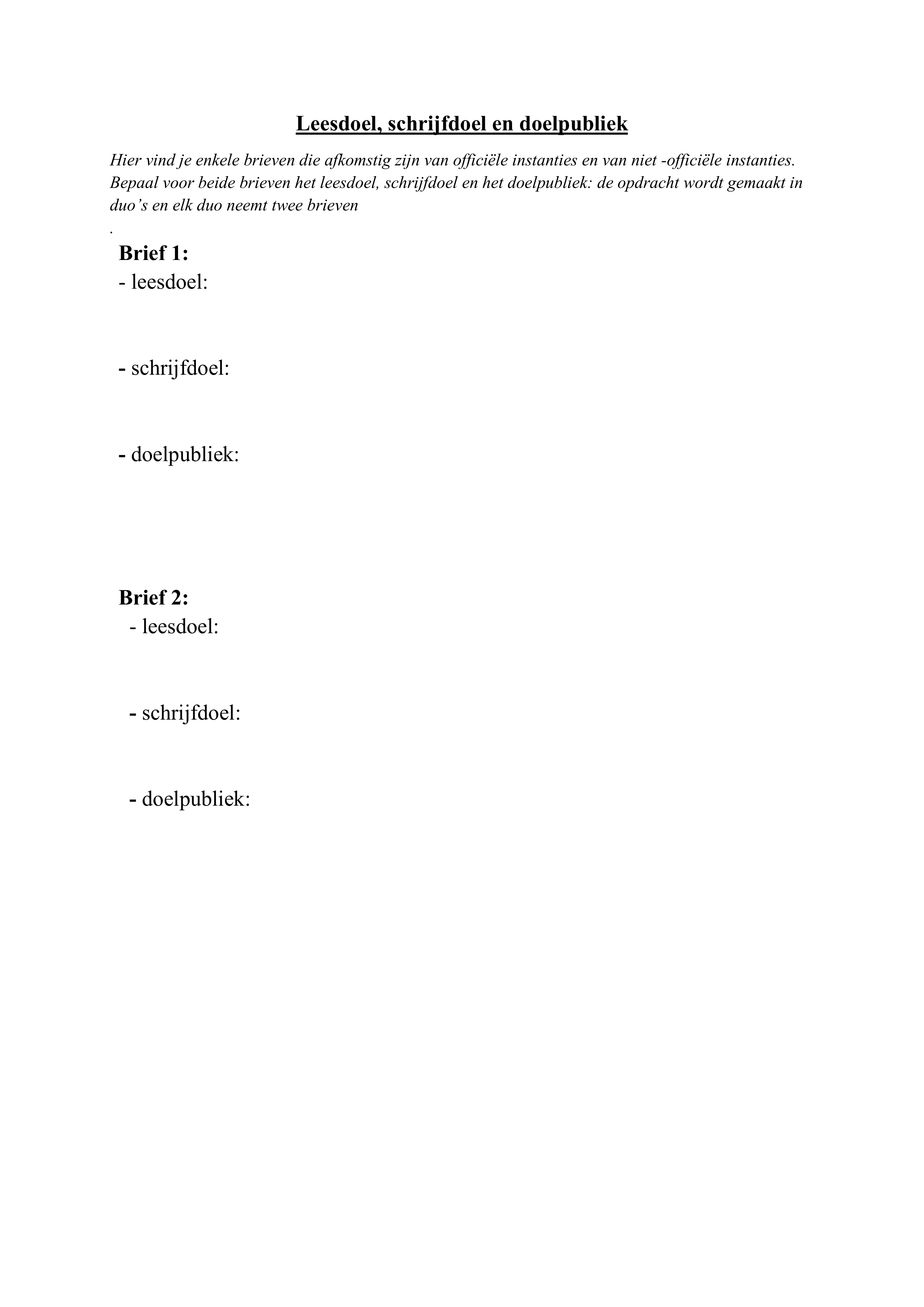 . Je gaat een spreekbeurt houden over het werk van de brandweerman. Je oom is een brandweerman en je wilt informatie. Aan wie schrijf je een brief?
