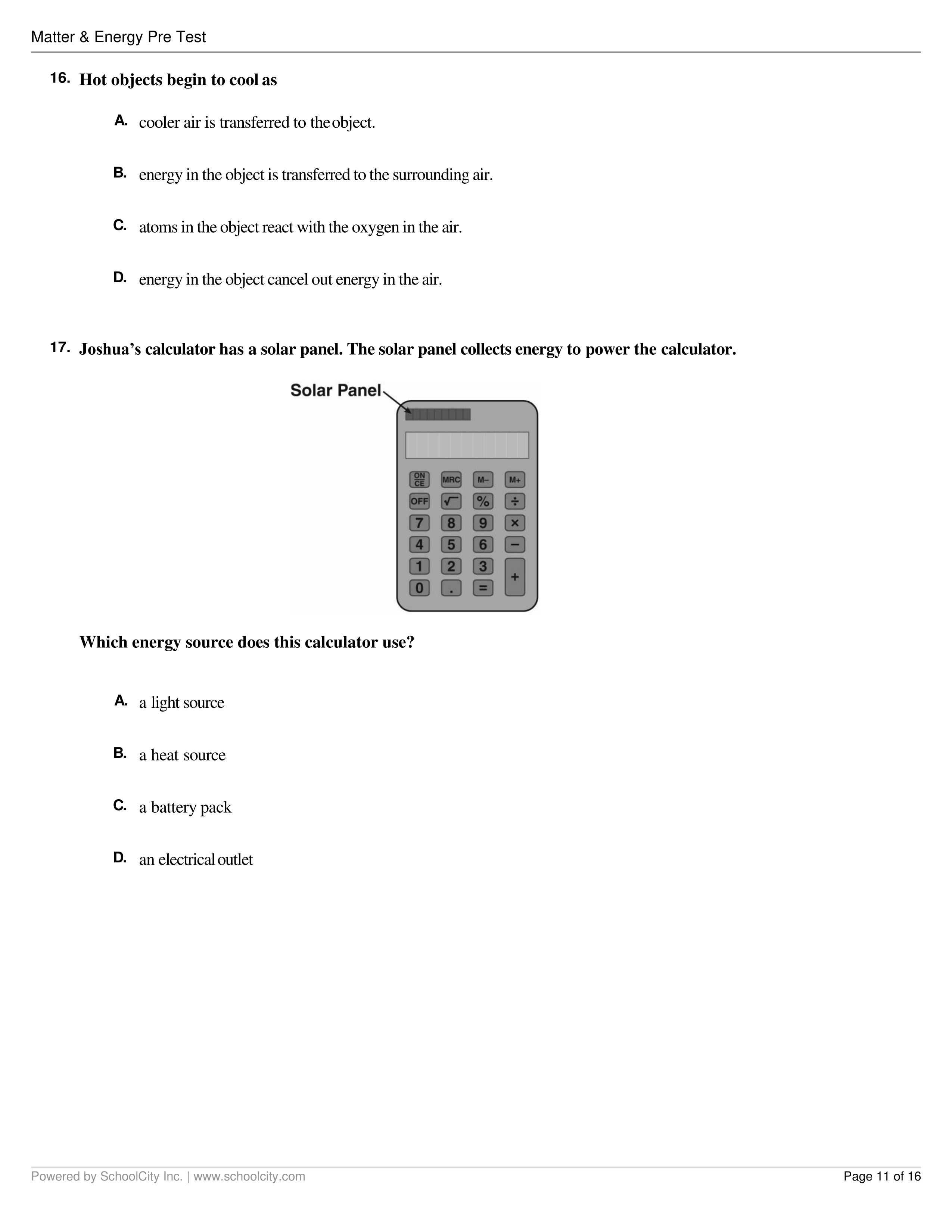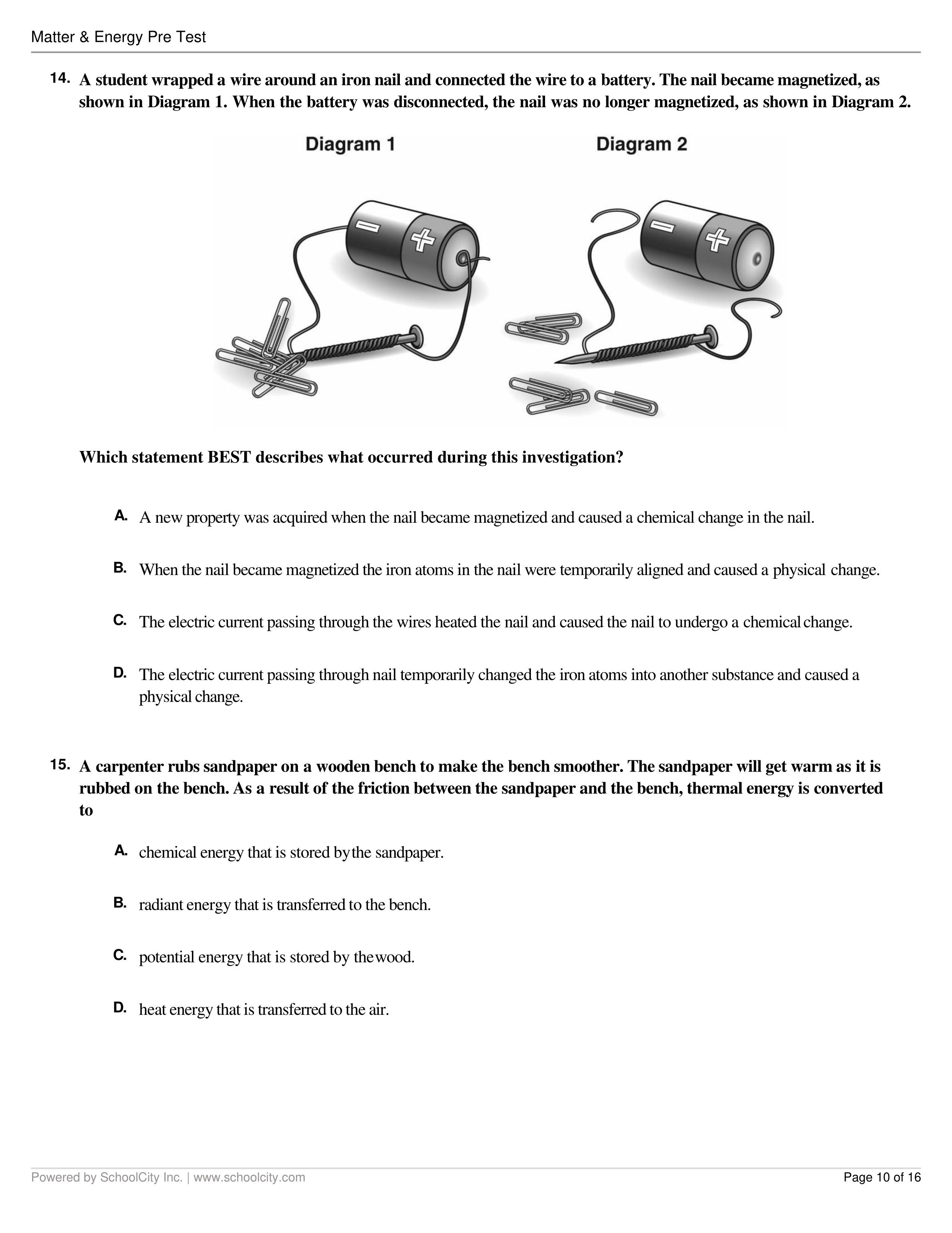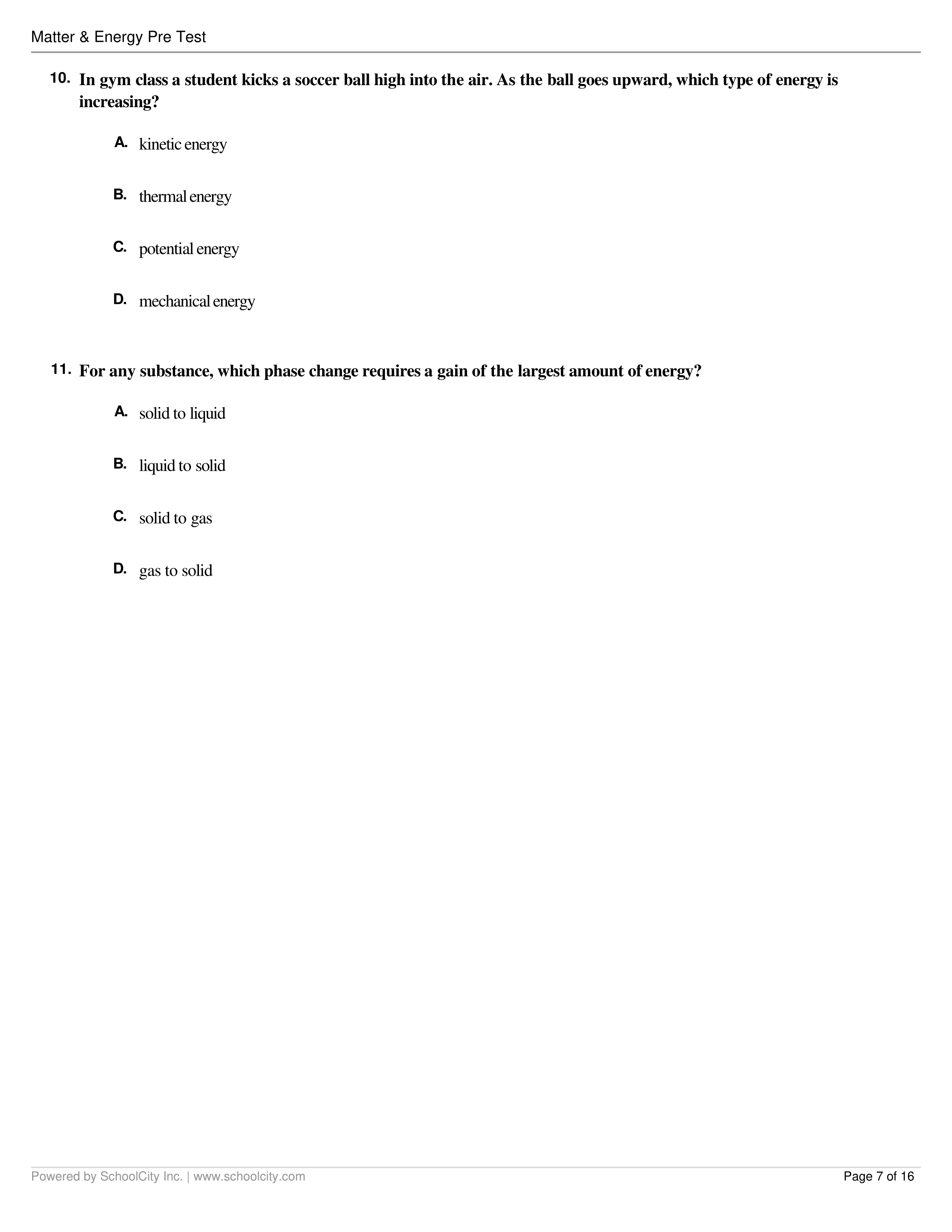 Energy and Matter Pretest