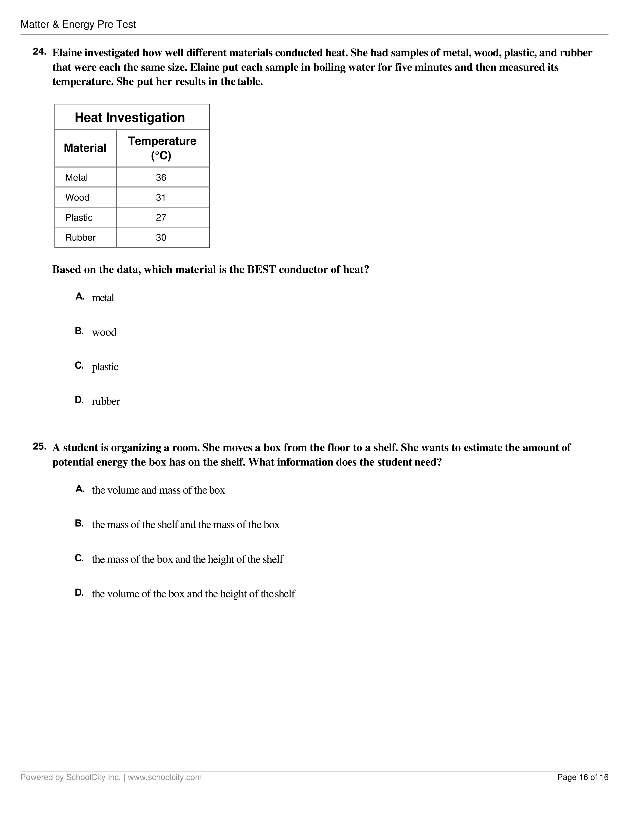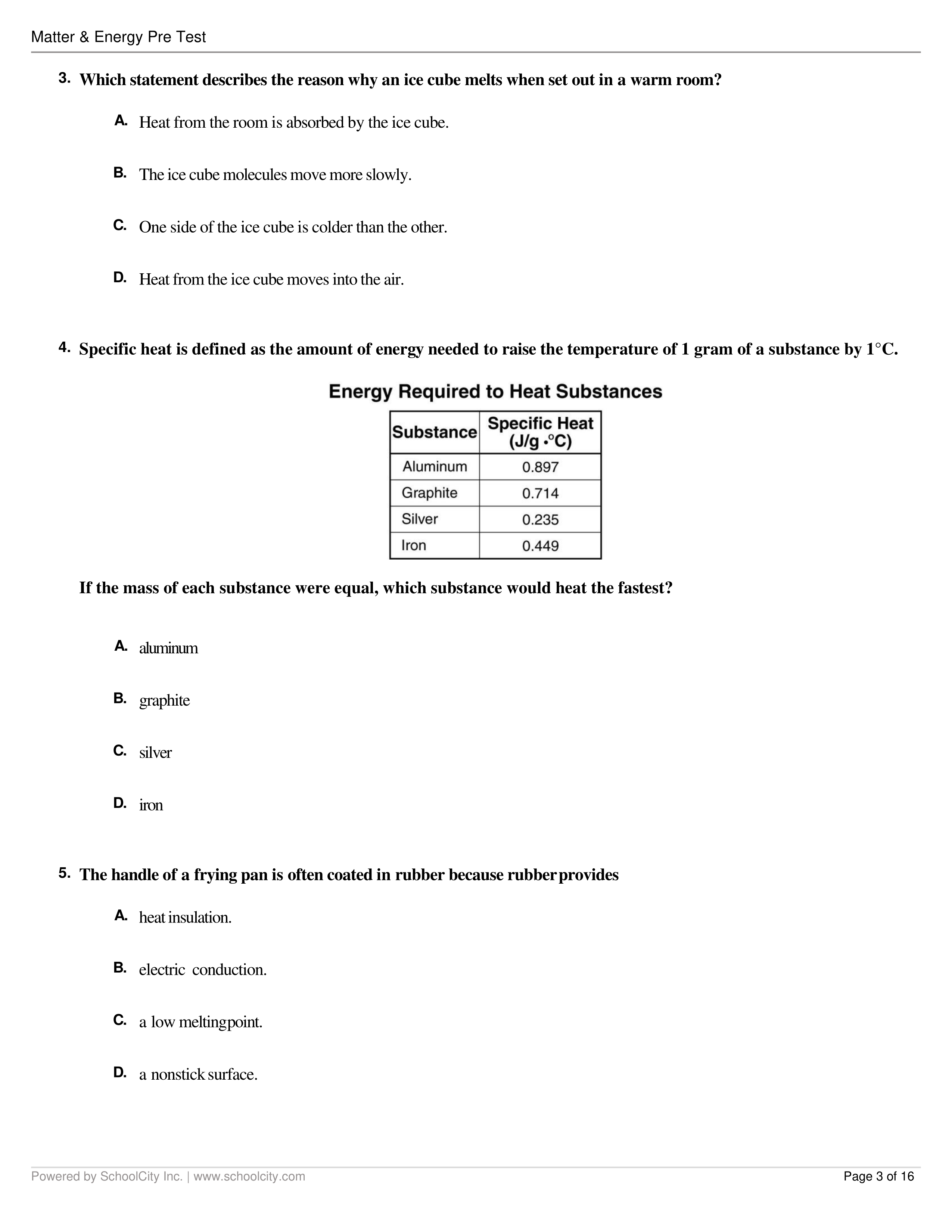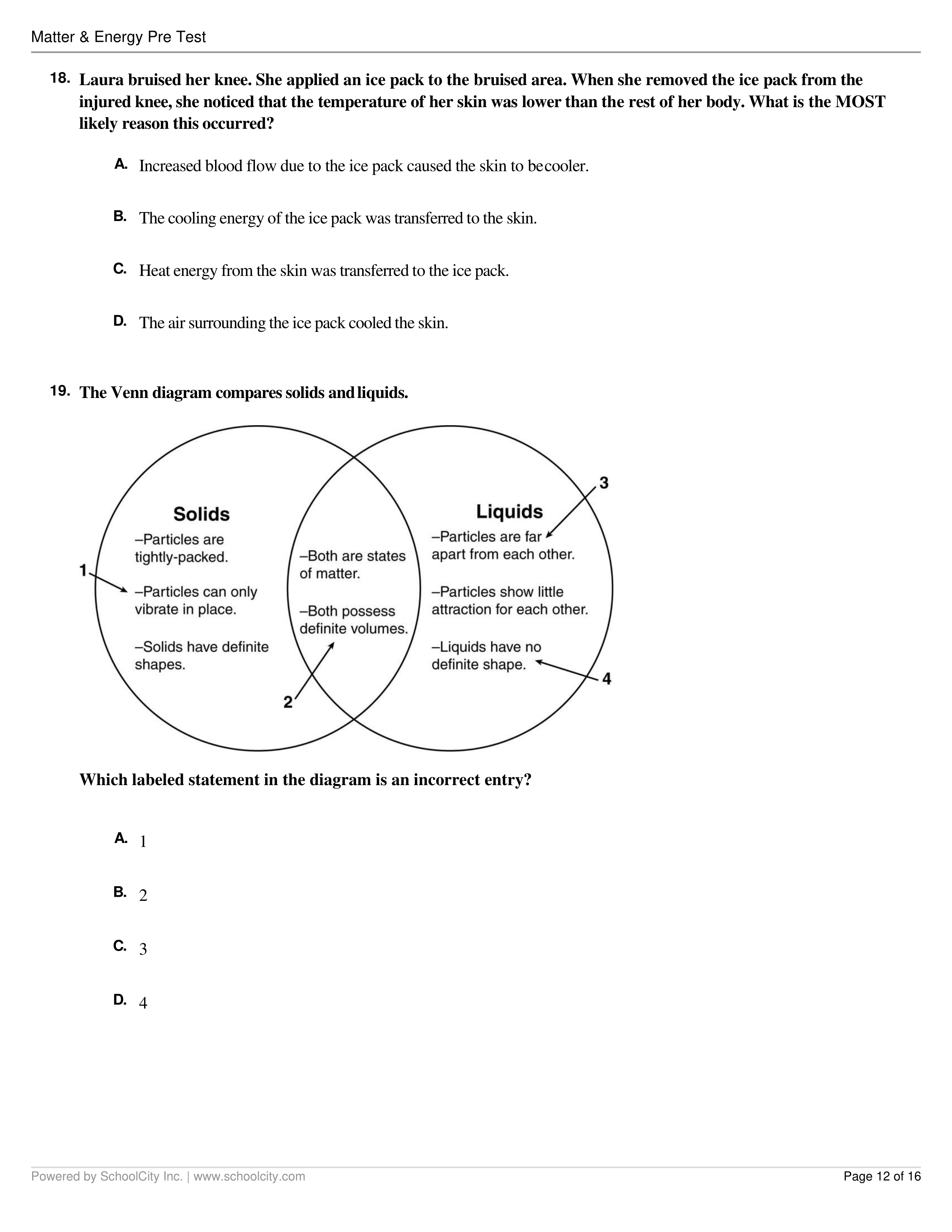 Energy and Matter Pretest