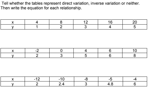 Unit 4 - Lesson 05 - Inverse and Direct Variation Practice