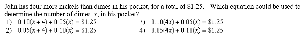 Lizzy has 30 coins that total $4.80. All of her coins are dimes and quarters. Which equation correctly models this situation?