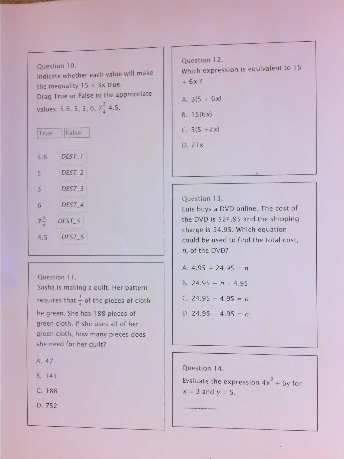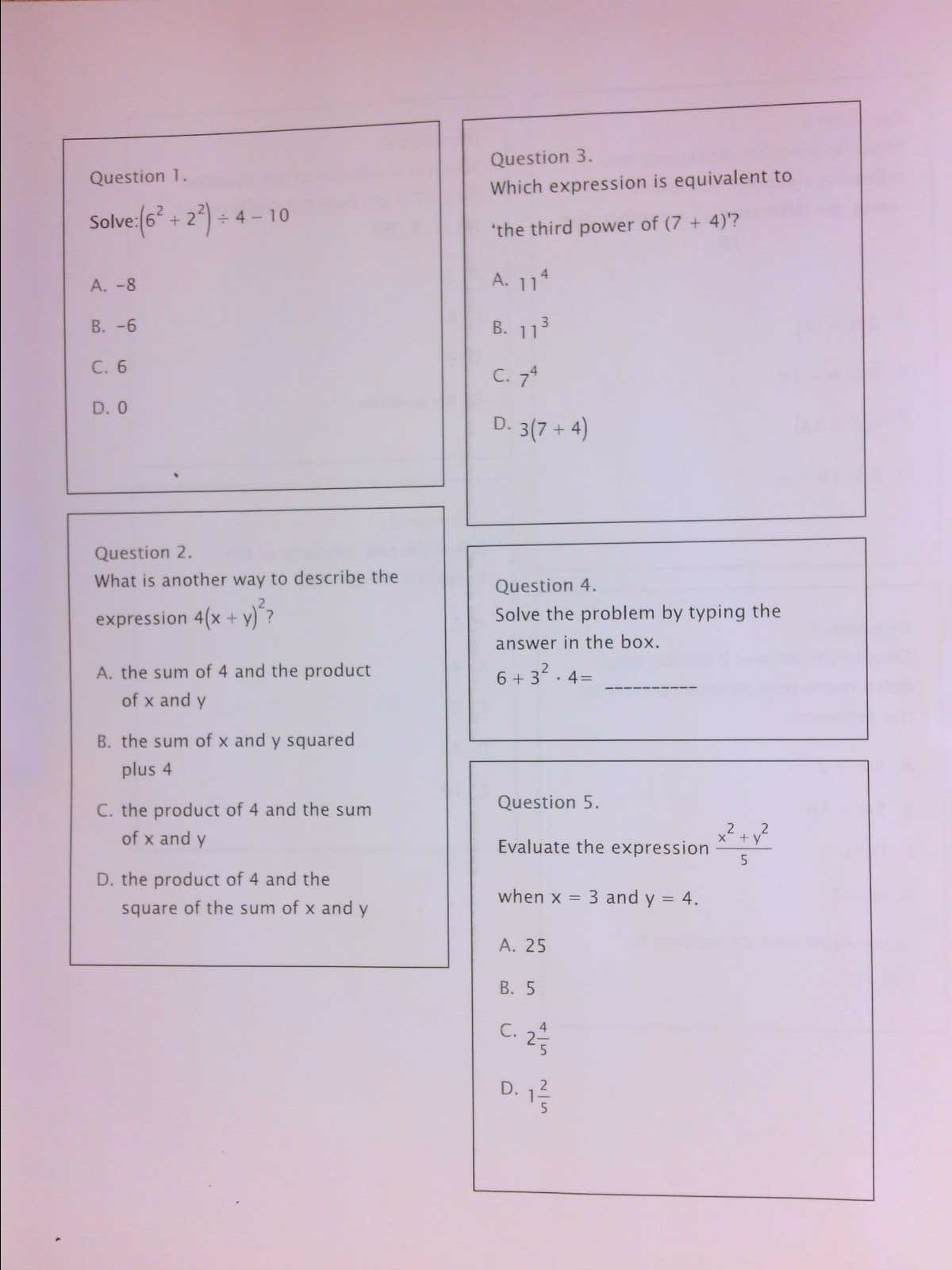 Algebraic Expressions - Form A