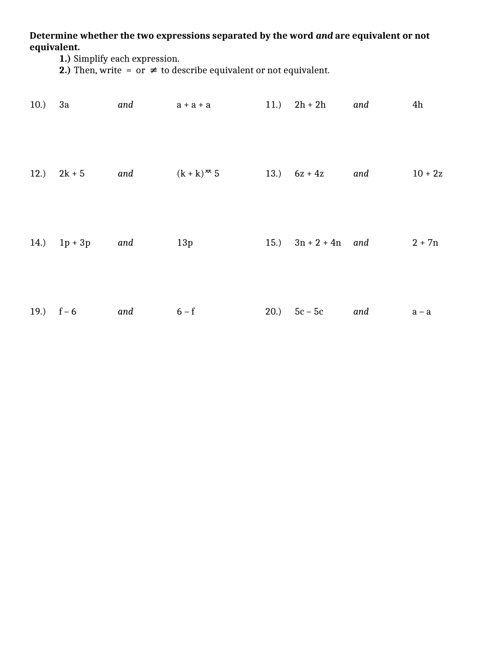 Are these equivalent or not equivalent? Remember to simplify when needed.