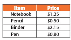 How much for 10 pens from the school store?