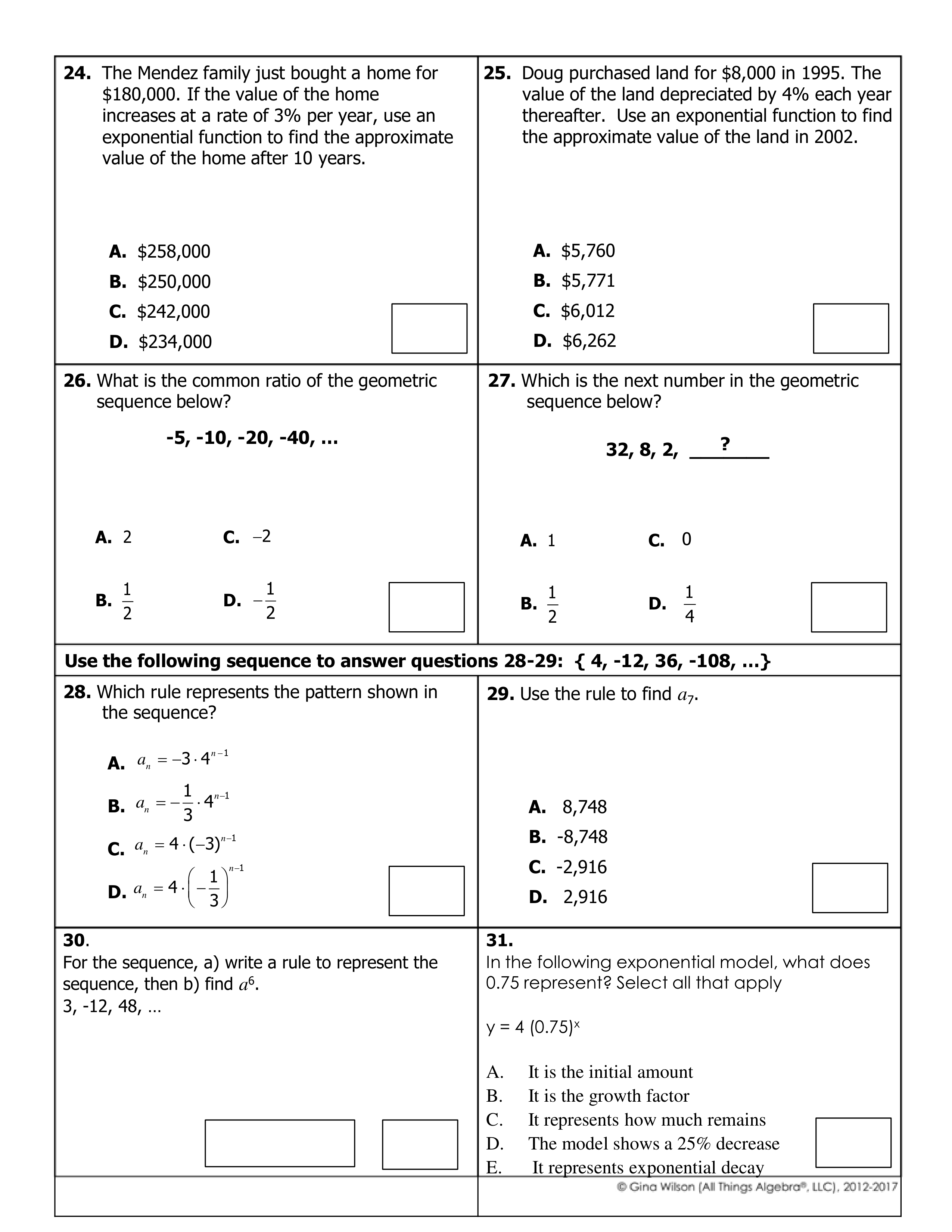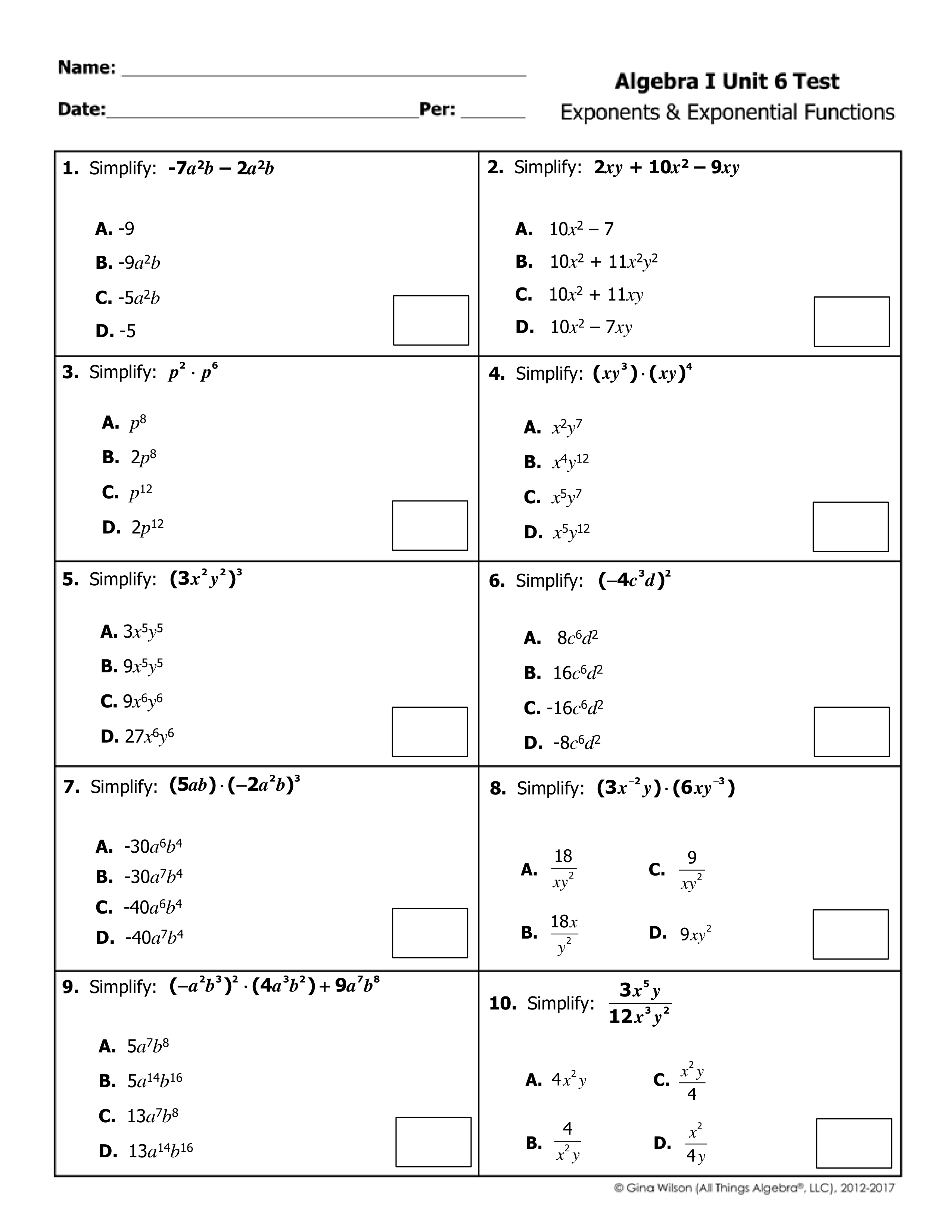 Unit 6 - Exponents & Exponential Functions