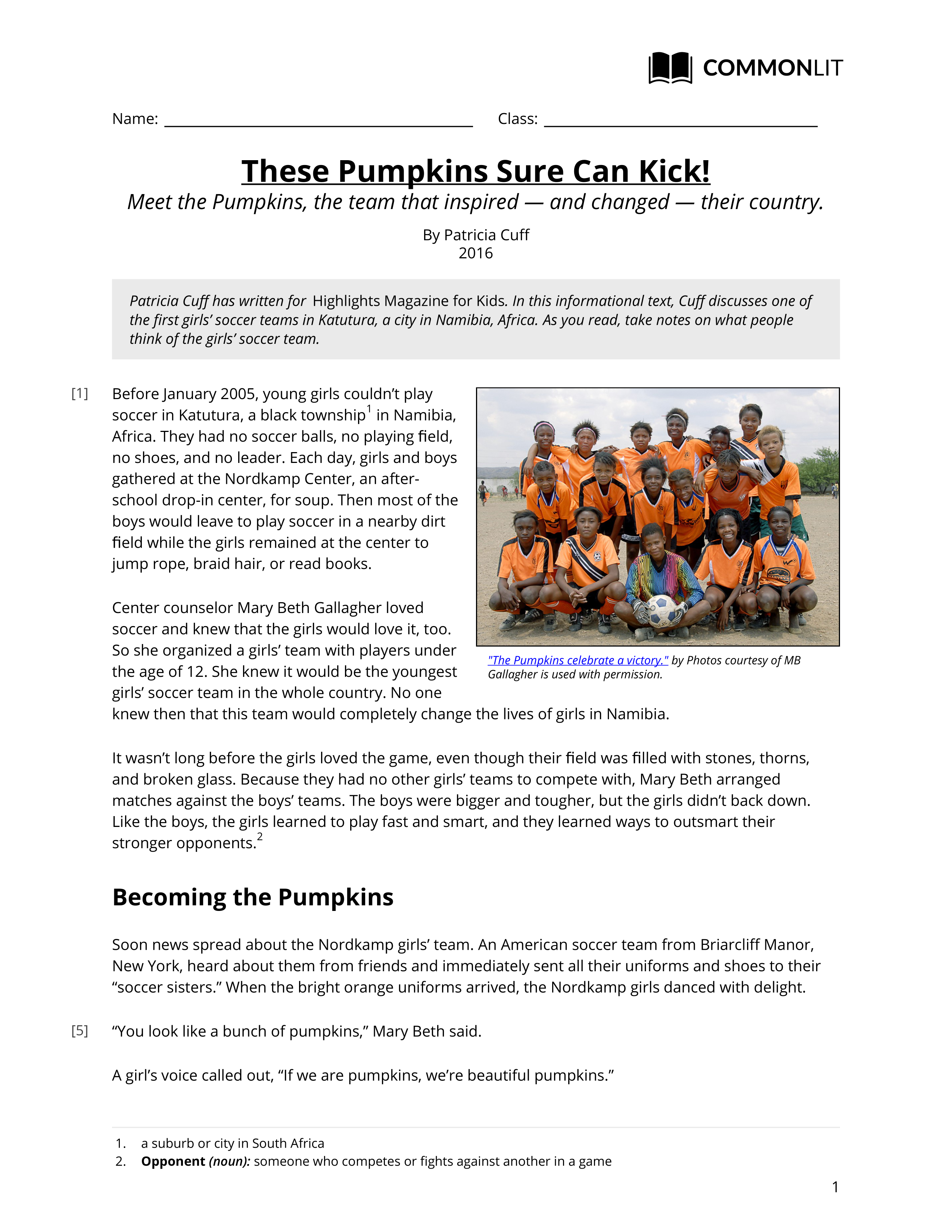 Please write two main ideas from "These Pumpkins Sure can Kick"