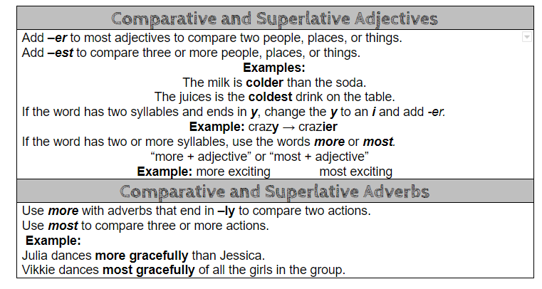 Grade 3- Comparative and Superlative Adjectives and Adverbs (3.L.1.1.h)