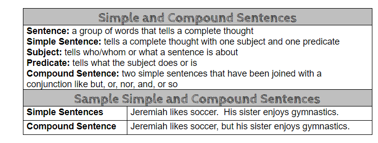 Grade 3- Simple and Compound Sentences (3.L.1.1.j)