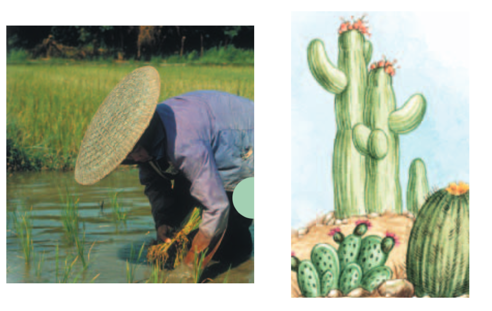Name two plants that need very different amounts of water? Be specific in your answers. (pg. 121 &122)
