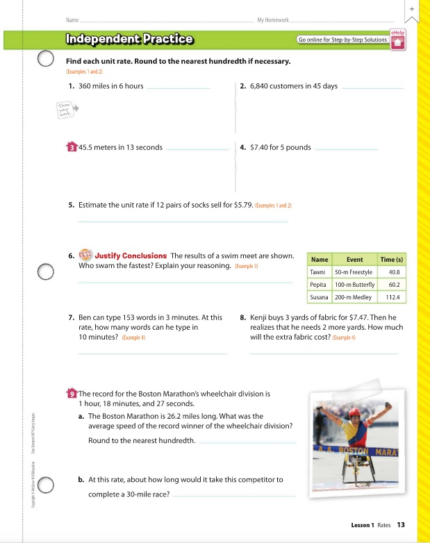 Math 7 Vol. 1 Textbook pg. 13 #1-8 (all)