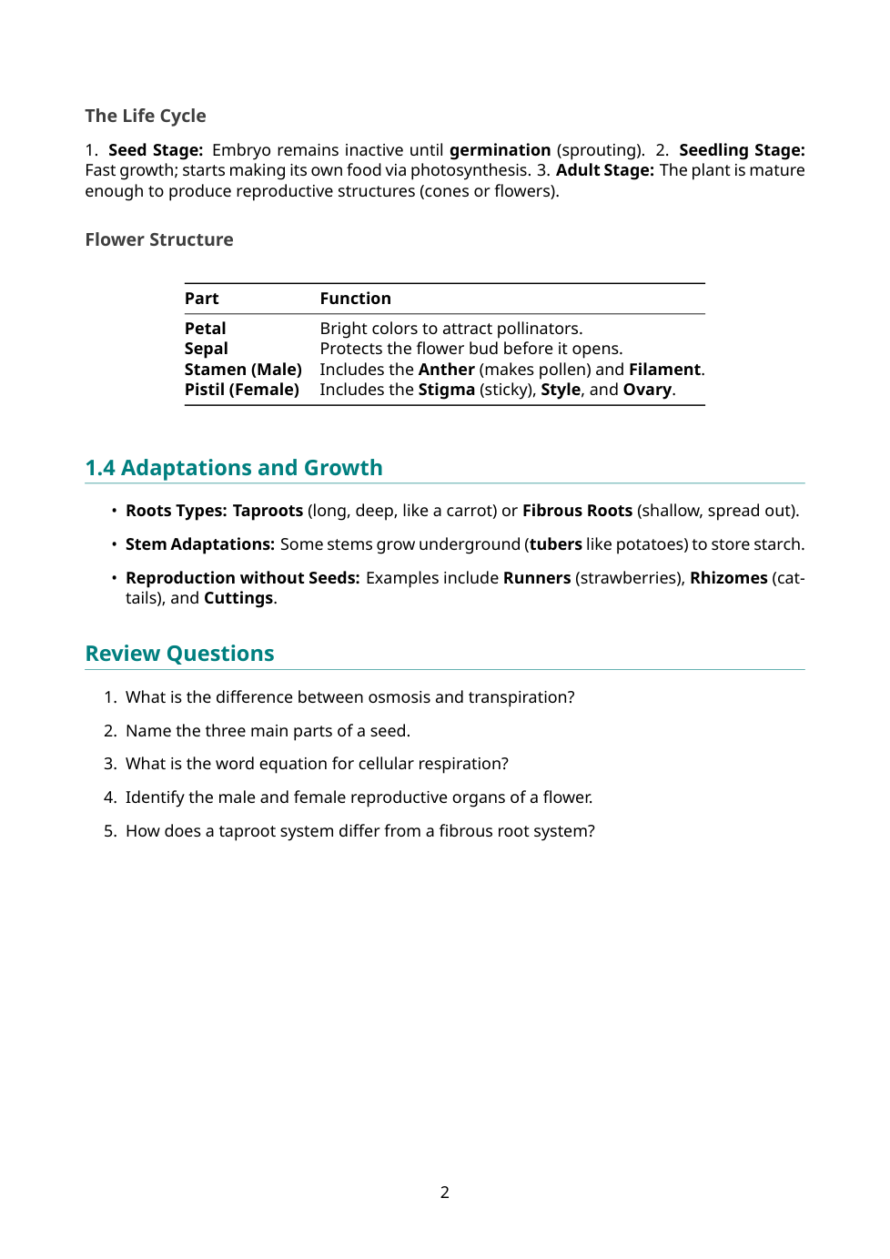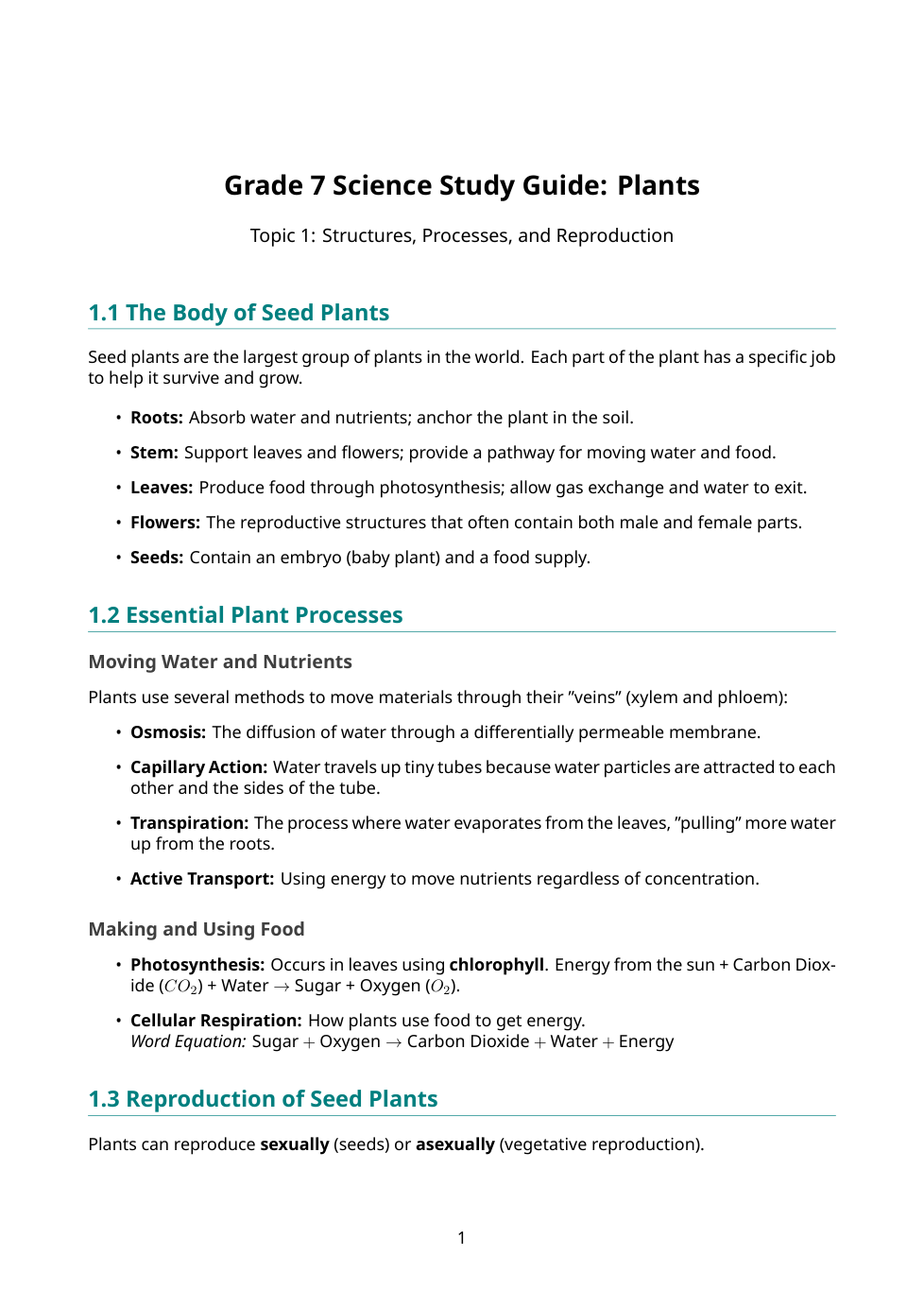 Sci. 7 Plants: Section 1.0 Quiz