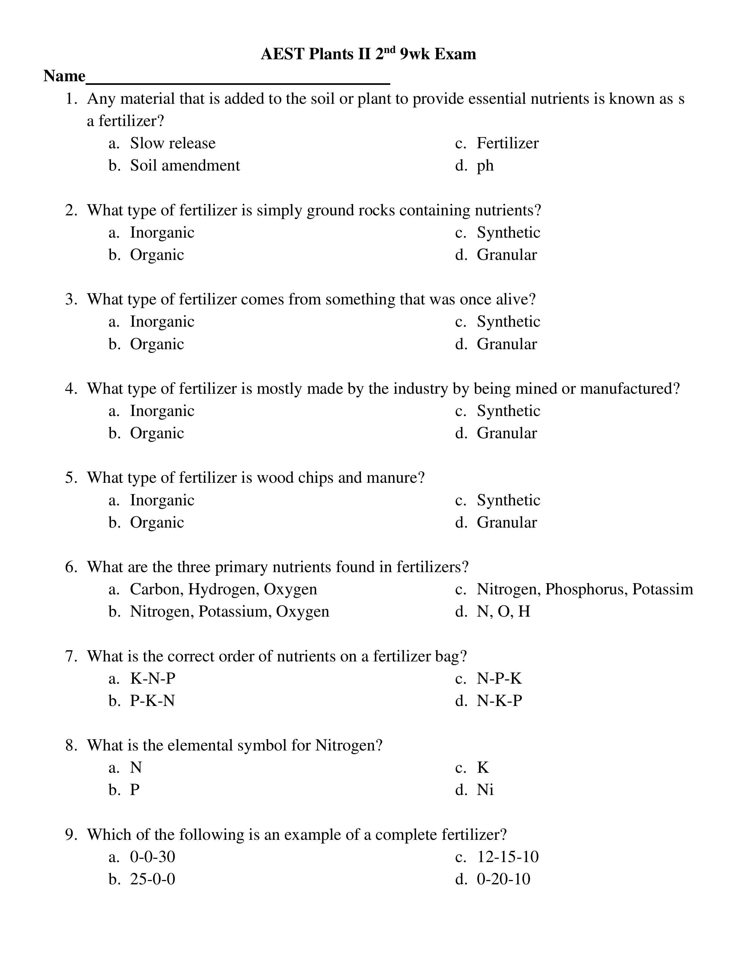 AEST Plants II 2nd 9wk Exam - 12-17-2019