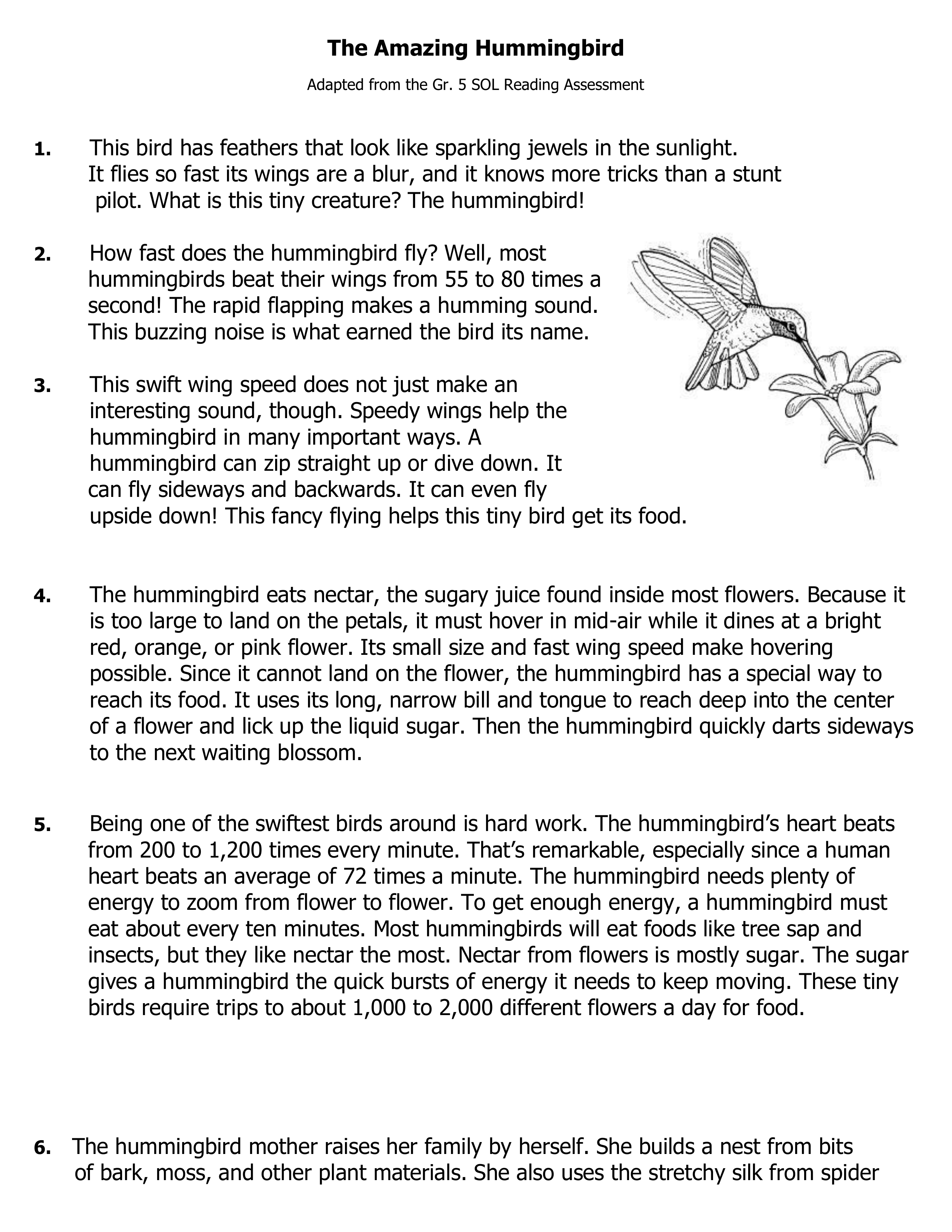 The Amazing Hummingbird-Q2 Unit 5 2019-2020