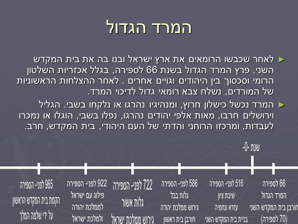 התבוננו בציר הזמנים ותכתבו לאיזו תקופה מתאים החג חנוכה?